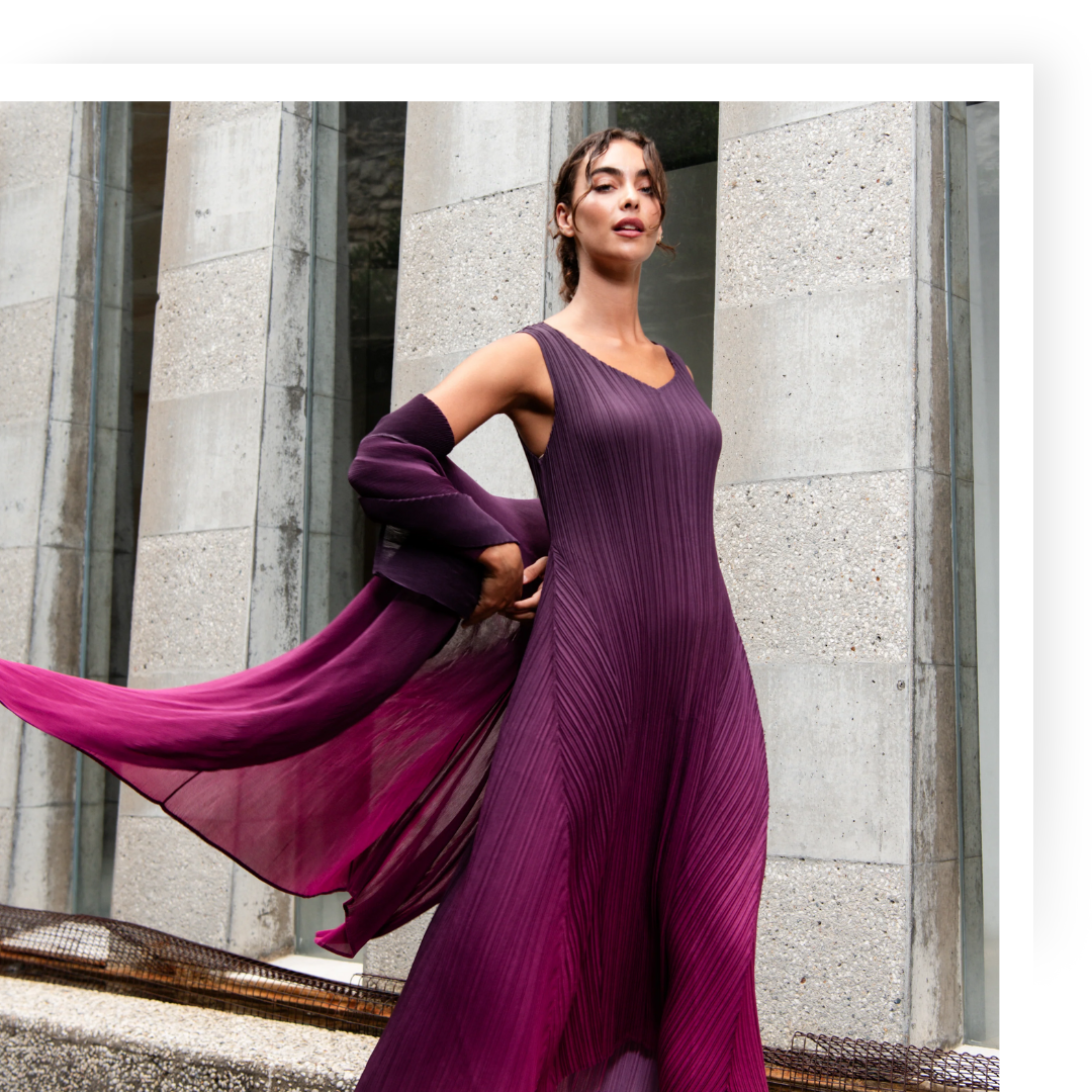 Designed in Sydney and inspired by global women who cross cultures and continents, each piece blends innovative pleating techniques with timeless elegance.