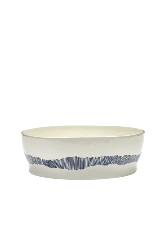 This white salad bowl with blue organic stripes from Ottolenghi will add a cheerful element...