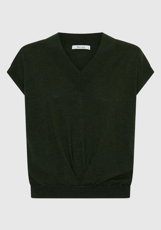 100% Extrafine Merino WoolV-necklineExtended shoulderFront drape detailRib trim at neckline, armhole & hemRelaxed through bodyFitted...