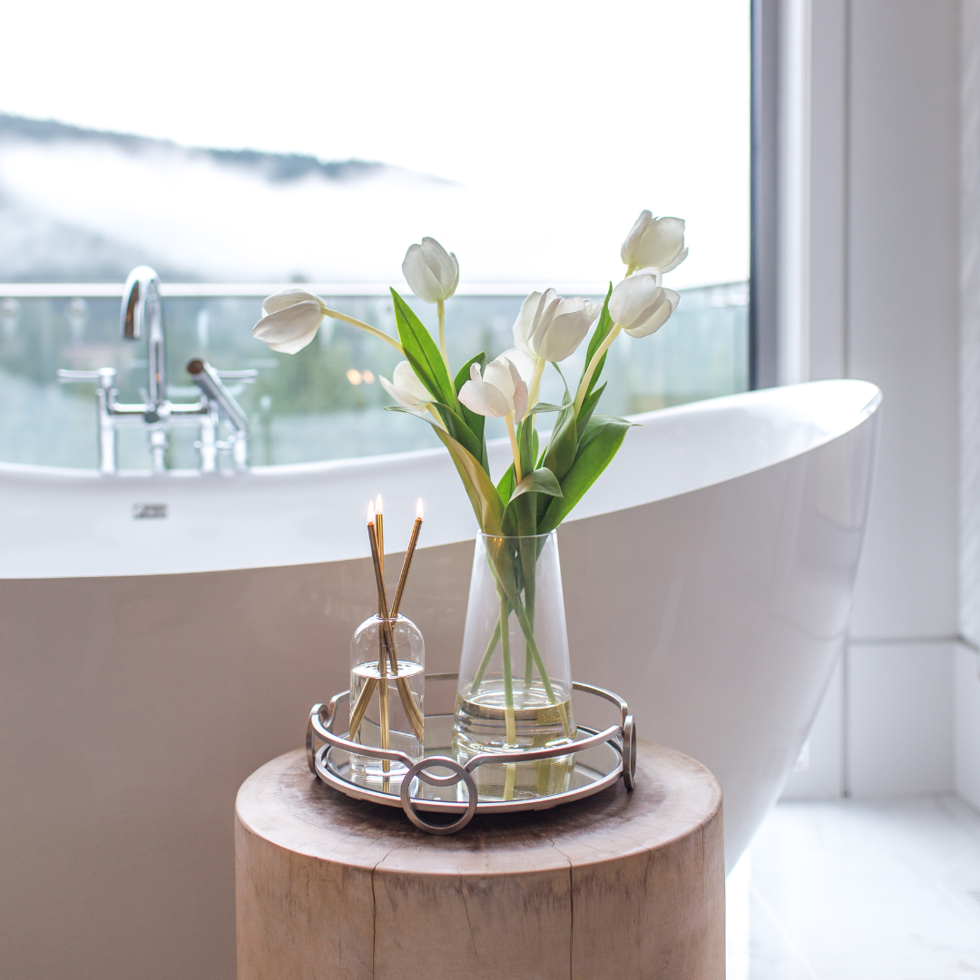 Pour Pristine Oil into your chosen glass vessel, ensuring the oil level covers the bottom of the candles.