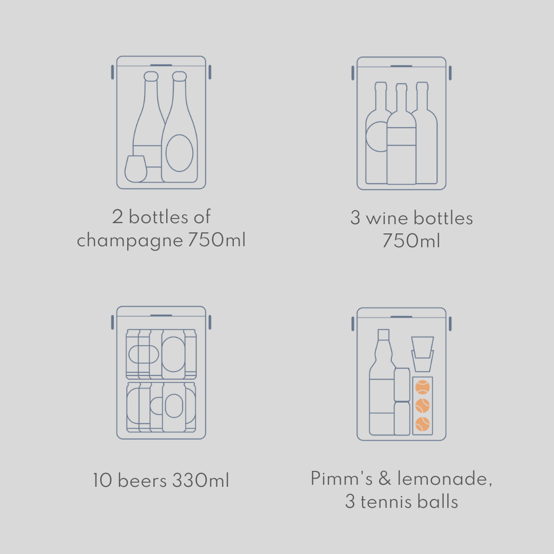 The Fieldbar Drinks Box is designed to hold two bottles of Champagne or three bottles of still wine in an upright position, making it an essential companion for stylish outdoor occasions.