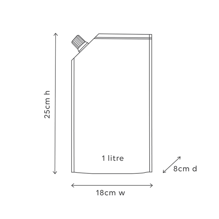Designed to minimise waste, the 1L refill pouch uses 85% less plastic and provides two refills for 500ml bottles or three for 300ml bottles.