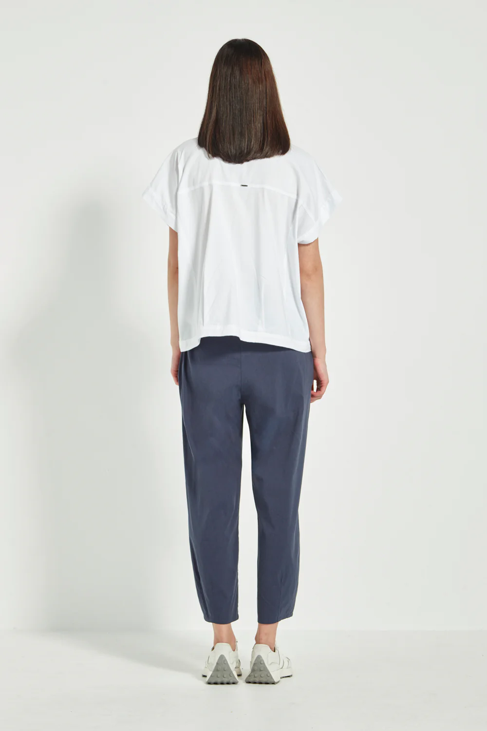 For lovers of the tapered barrel leg, the Verge Ladies Acrobat Cove Pant offers a full-leg silhouette with the comfort of Acrobat fabric. It features an easy elasticated back waistband, flat front, slant pockets, and a 7/8 length. Modern styling is enhanced by dart details that taper the hem for a polished finish.