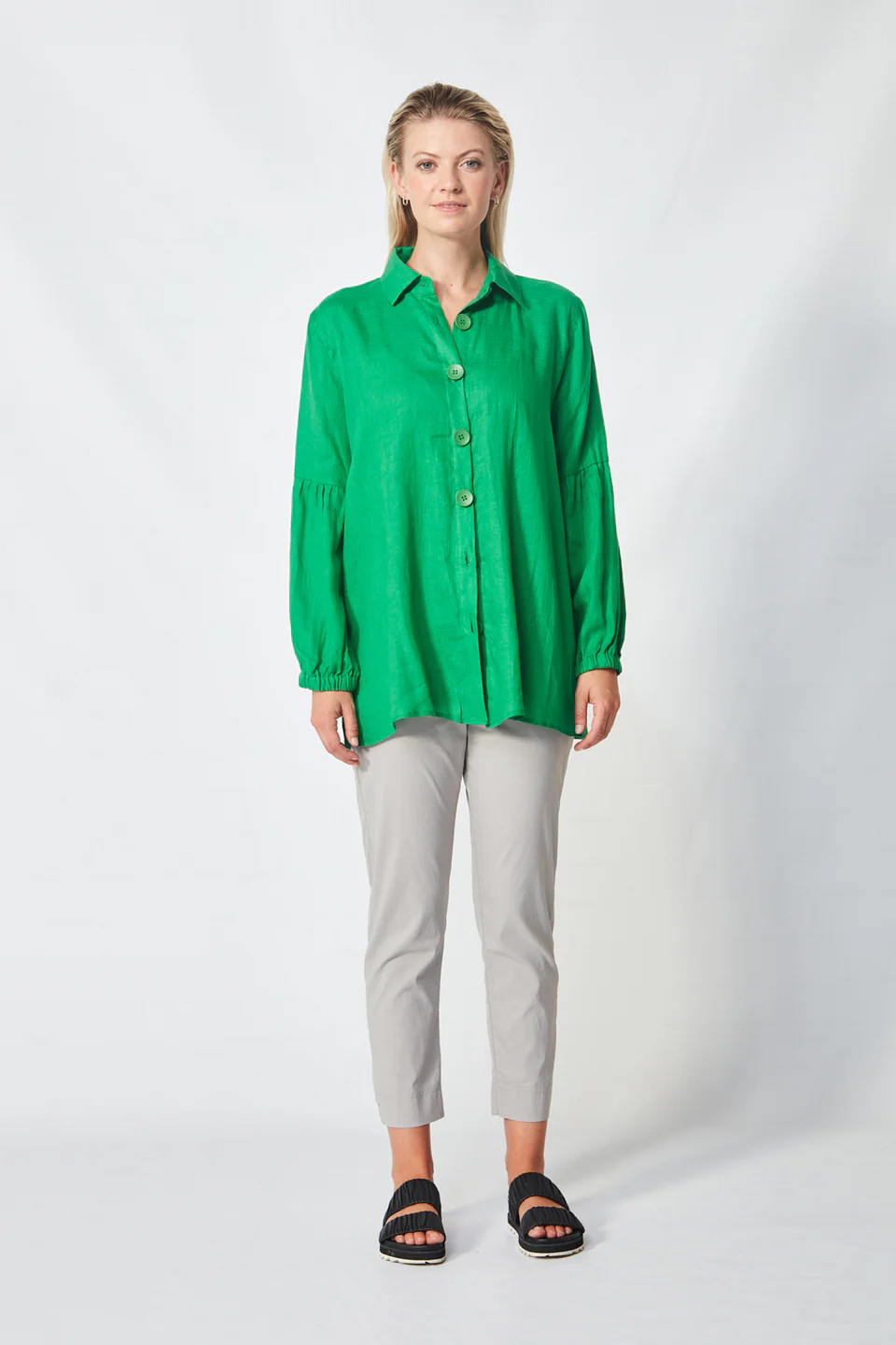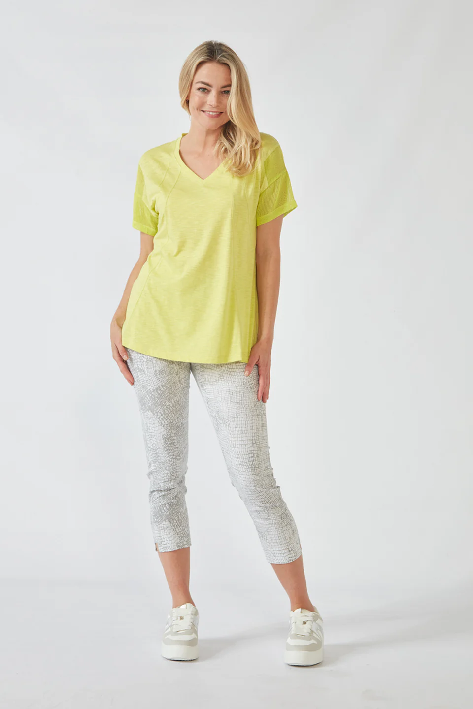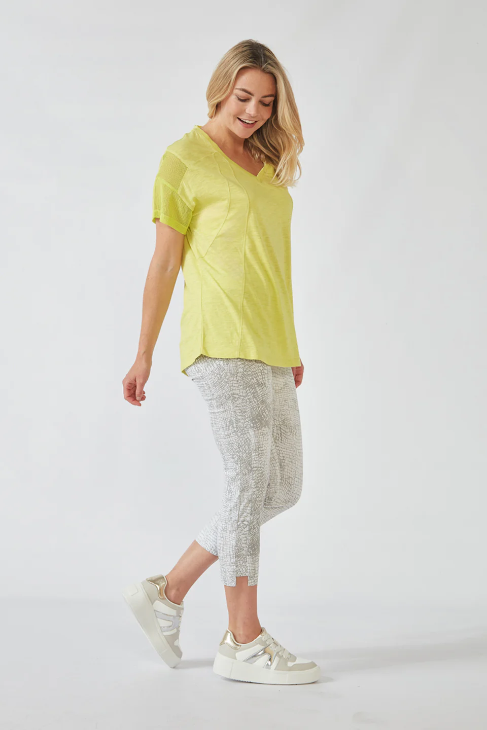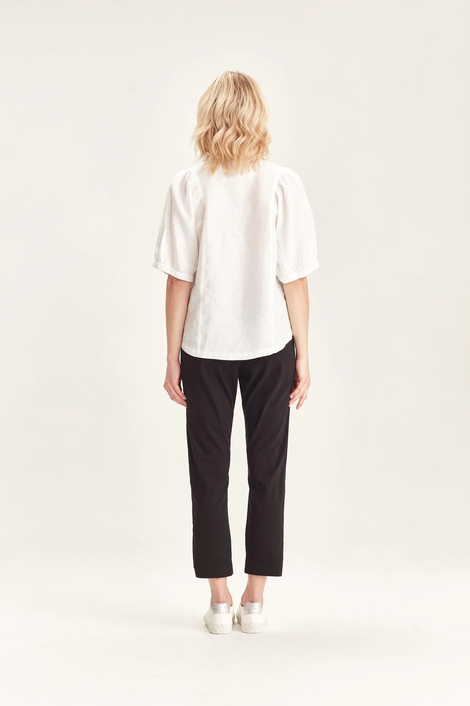 Crafted from VERGE's exclusive European lightweight stretch Cotton Acrobat fabric, the 7/8 length slim leg Desiree Pant offers exceptional comfort, breathability, and easy care. This stylish pant features a stepped hem, panel detailing down the sides, and a concealed elasticized waistband for a sleek, comfortable fit.