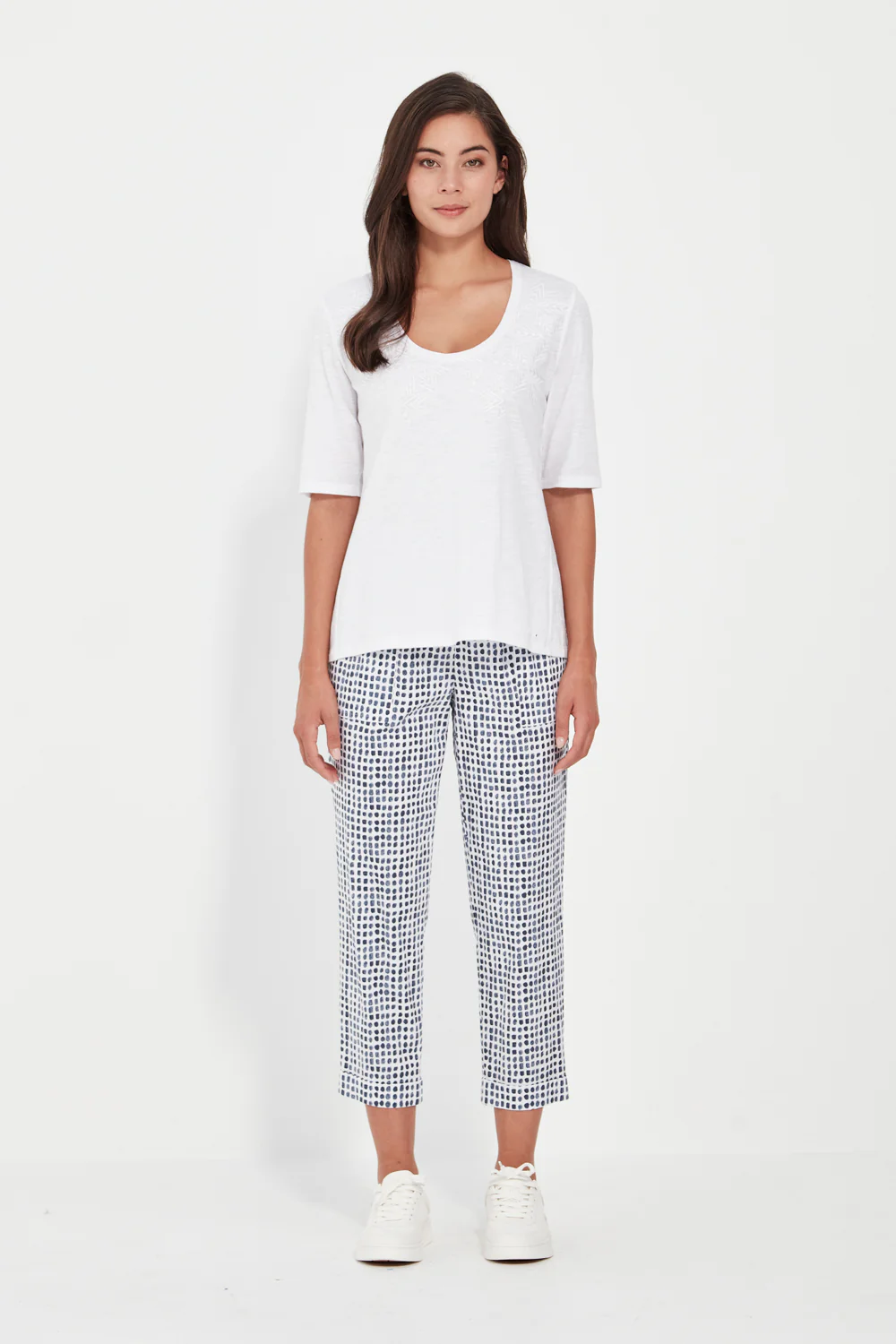 Designed to move with you while maintaining a polished look, it’s finished with deep front pockets and a cuffed hem for added utility and style. The elegant, tile-inspired print brings a modern twist to a timeless silhouette—making it a versatile go-to for any season.