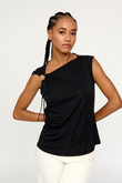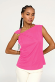 The Tinta Alida short sleeve top, available in sleek black or vibrant fuchsia, combines chic sophistication with a modern twist. Featuring stylish ruched sides that enhance your silhouette and a C-ring detail for a hint of edgy elegance, this top seamlessly transitions from casual outings to evening events, making it a versatile wardrobe staple.