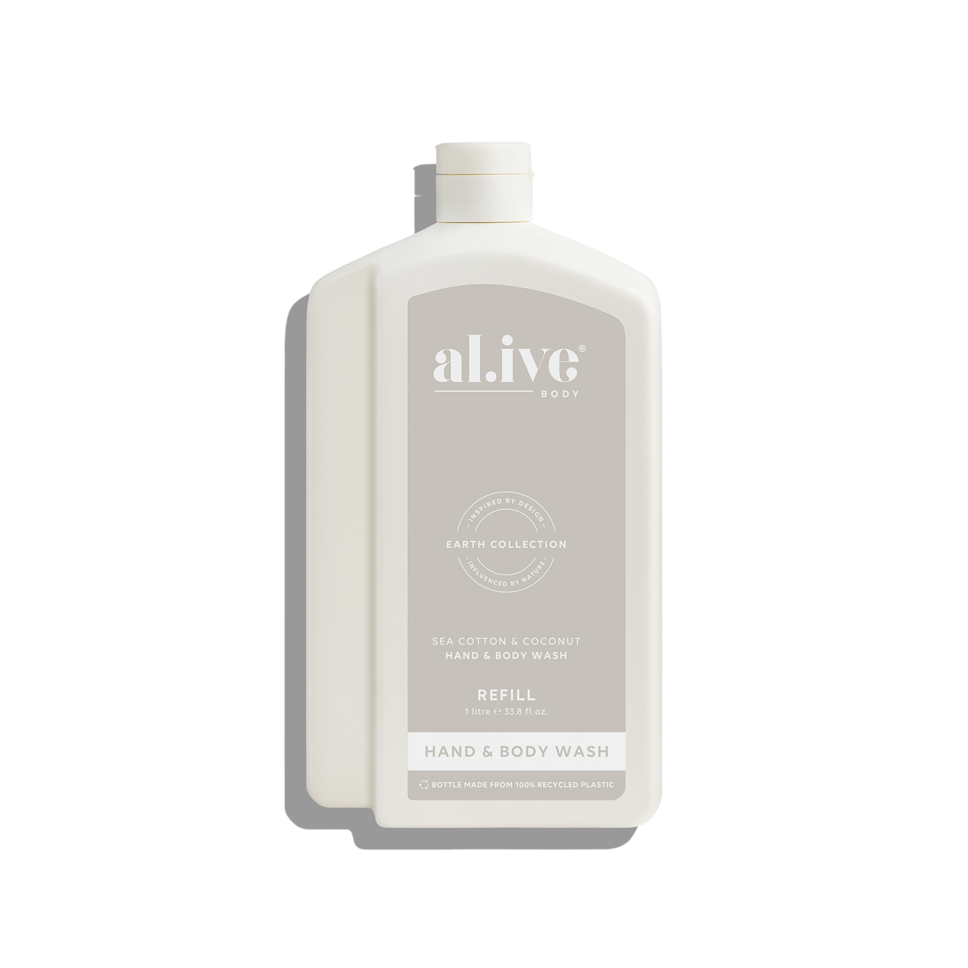 Each refill is designed to refill the 500ml al.ive body Hand & Body Wash bottle twice.