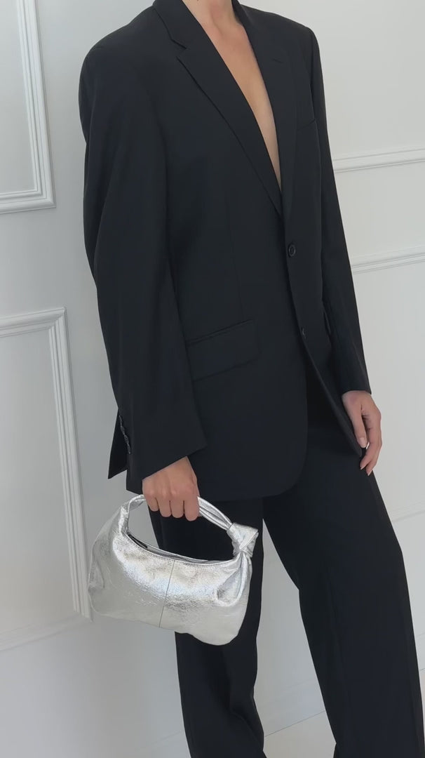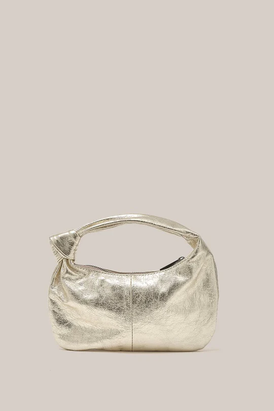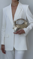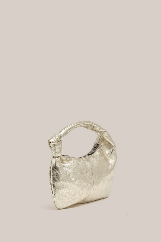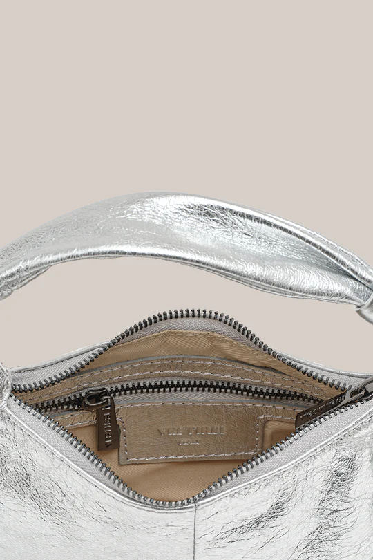Meet the Allegra Mini Knot Crescent Bag—a sleek, downsized take on the beloved Vestirsi Allegra handbag. Perfectly sized for your daily essentials, this effortlessly chic design transitions seamlessly from day to night. Handcrafted in Italy from buttery soft Italian leather, it features a statement knotted top handle for a bold yet refined touch. Destined to turn heads, the Allegra Mini strikes the perfect balance between style and function. Available in Silver or Gold.