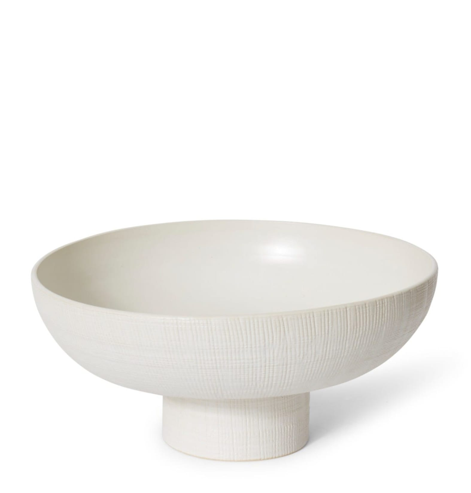 Measuring 33 x 33 x 15cm, its wide, low-profile design makes it perfect for styling with dried botanicals or as a sculptural accent on its own.