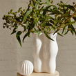 The Madras August Wavy Vase adds a touch of playful elegance with its distinctive wavy silhouette and half-dipped glaze. Its white ceramic base is adorned with raised, multi-colored speckles, creating a unique texture that makes this piece a standout. Perfect for showcasing fresh blooms or as a decorative accent on its own.