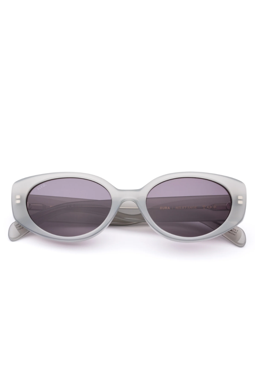 Soft, subtle, and sophisticated, Aura in Milky Sage by Sito Shades brings understated elegance to every look. Featuring gentle milky green-hued acetate frames, Aura flatters all face shapes, offering versatile style for everything from casual coffee catch-ups to evening strolls. Handcrafted from eco-friendly materials and fitted with premium UV-protective grey lenses, Aura Milky Sage seamlessly blends elevated design with conscious fashion.