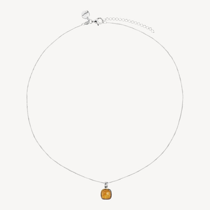 Meticulously crafted by our skilled artisans, the citrine finds its place within a yellow-gold plated bezel, beautifully contrasting with a silver bale. Suspended from an Italian-made sterling silver box chain, the pendant comes with a generous extension, allowing you to effortlessly find your ideal length and express your unique style.