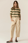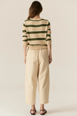 The Avrid Barrel Pant by POL Clothing is a must-have for your summer wardrobe. Crafted from crisp cotton with a paper-touch feel, these pants feature an on-trend tapered silhouette that adds a modern twist to casual looks. With a flat waistband at the front and an elasticated panel at the back, they offer comfort and ease, inspired by the popular Raydel/Carsen Denim Pant. The hip pockets and rounded patch pockets on the back with faux flap detail add functional style, while the single pleat on the front of each leg adds a touch of sophistication.