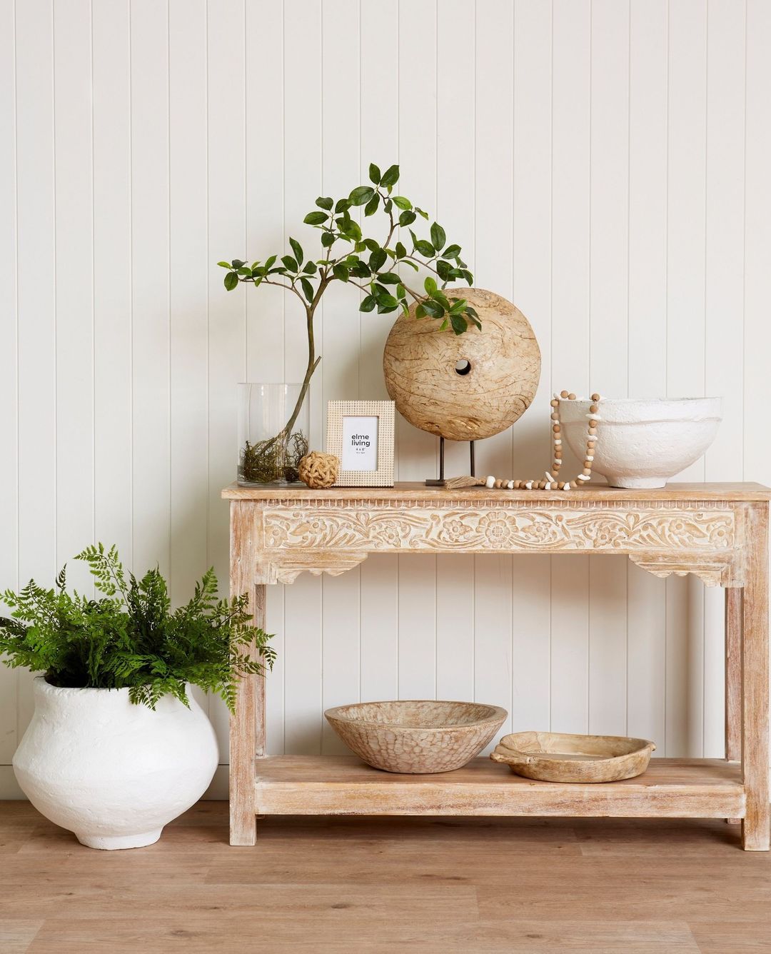 The Bharat Wooden Tray and Bowl from Elme Living offer a stylish and functional way to display fruit or showcase home décor. Crafted from beautiful mango wood, these pieces bring warmth and natural texture to any space, making them perfect for adding a touch of rustic elegance to your interiors.