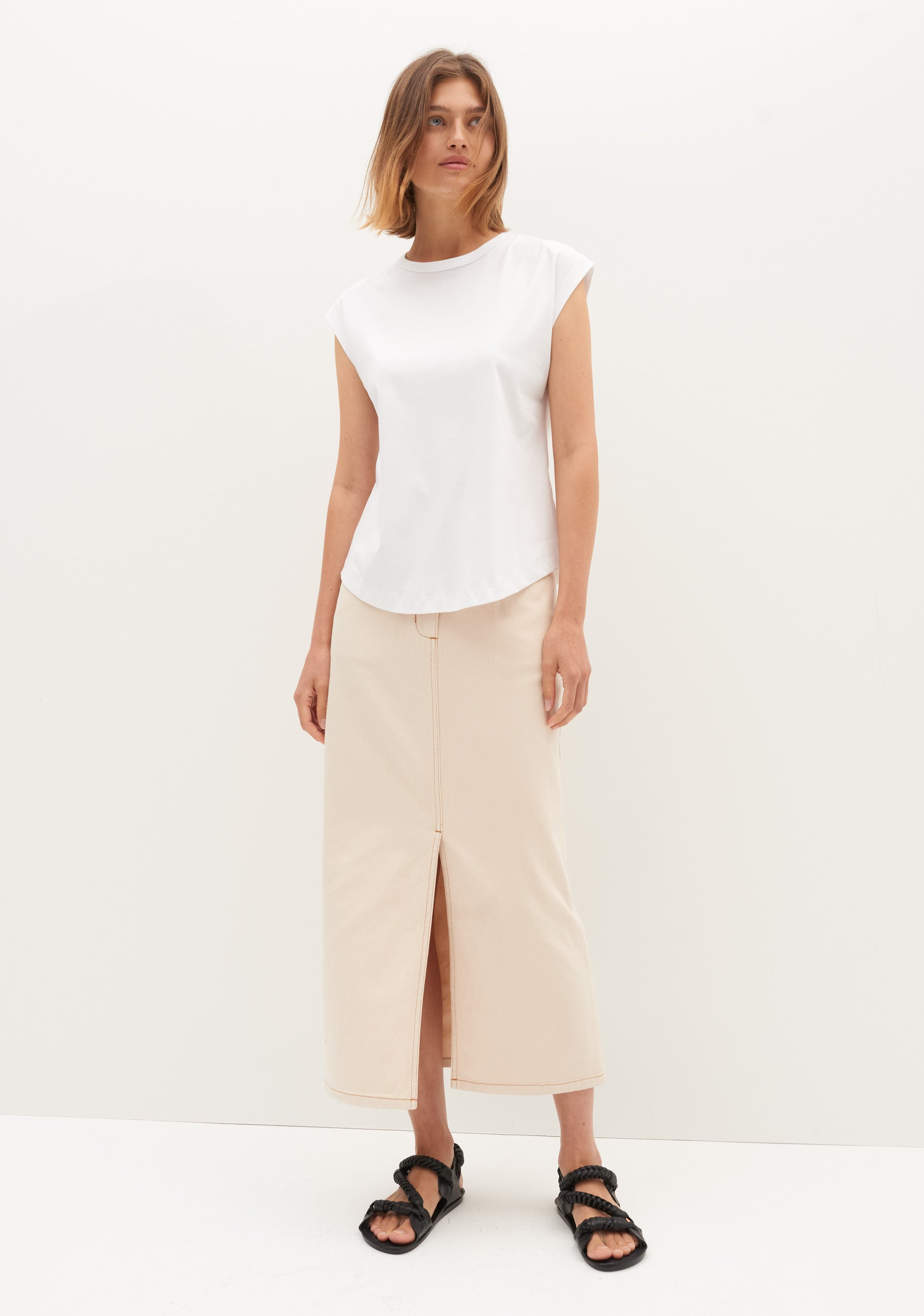 Introducing the Morrison 'Blanca Denim Skirt' in timeless shades of Blue or Ecru.