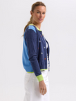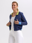 Cotton / silk blend crop cardigan with embroidered details on front and sleeves