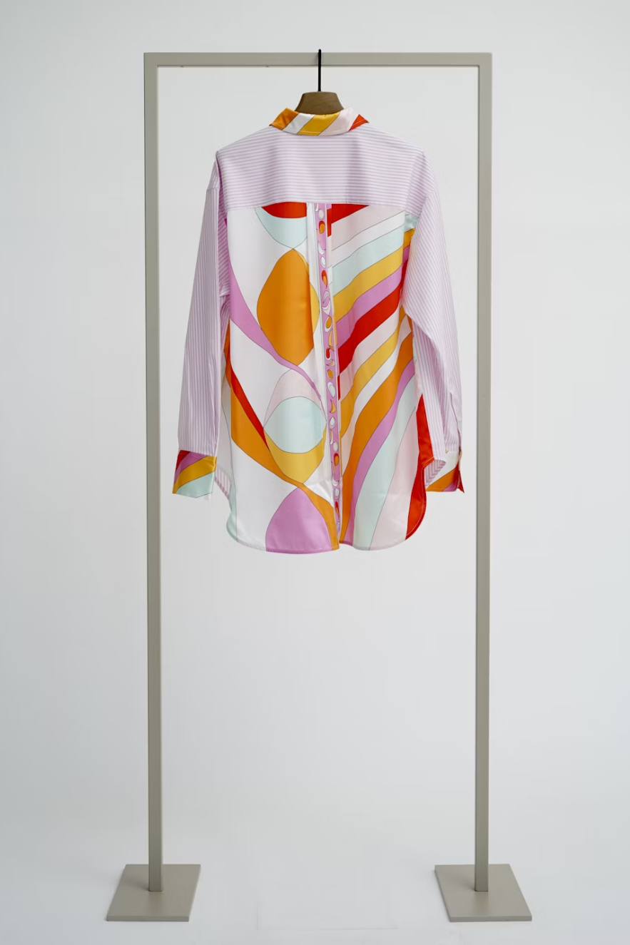 The Blouse 6212 by Herzen's Angelegenheit combines elegance and comfort, crafted from pure cotton with refined silk patches for a touch of luxury. Featuring a classic shirt collar, this blouse is the perfect balance of casual and formal, making it ideal for both work and everyday wear.