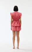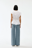 Slightly ruffled sleeves and peplum hem for feminine structure