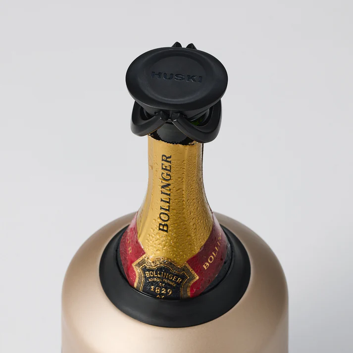 The detachable bottle stopper also fits securely in the base of your Huski Champagne Cooler.