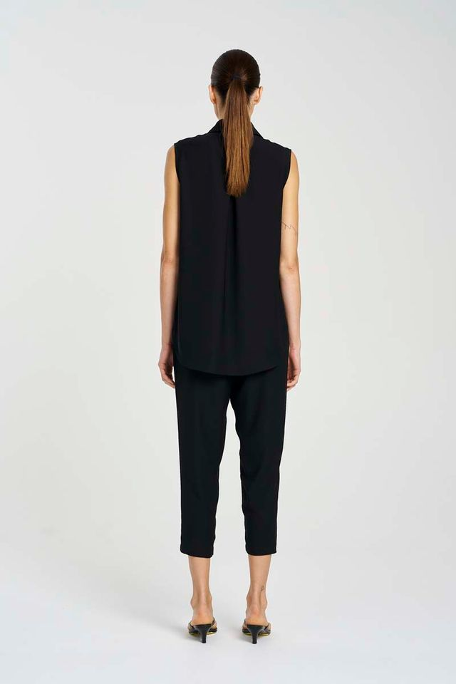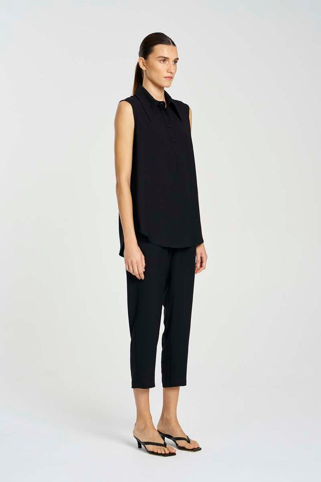 Cut from Mela Purdie's Micro Denier with it's fluid handle and low sheen finish. The Capri pants are cropped in length and cut for tapered fit through the leg.