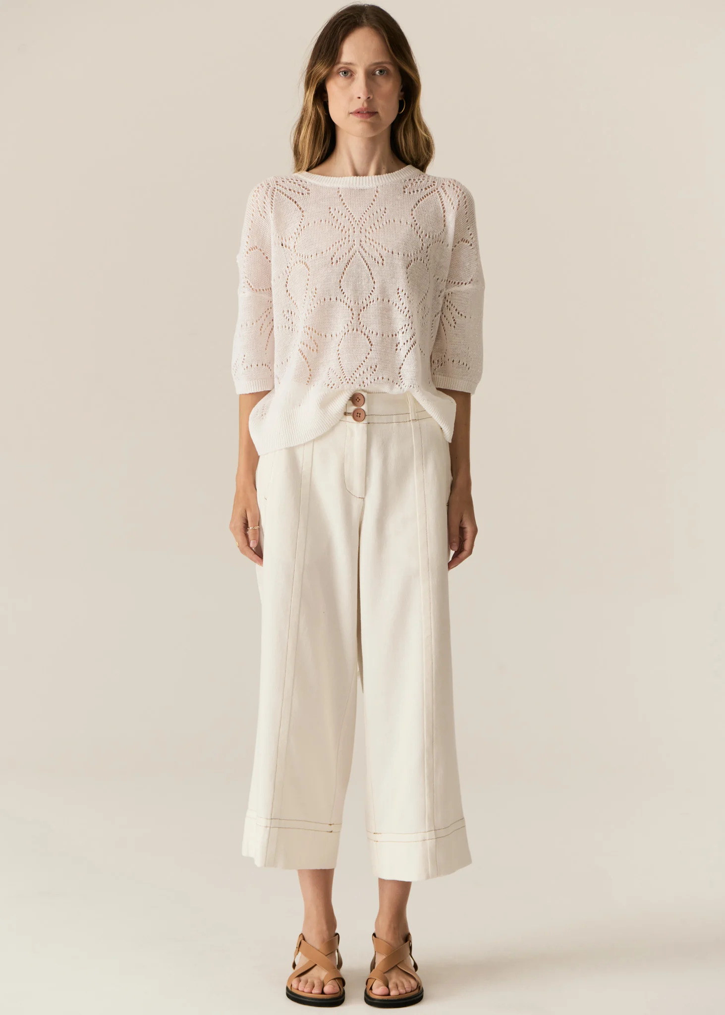 A fresh update on POL’s bestselling Raydel silhouette, the Carsen Crop Denim Pant is back with a new name and seasonal colours. Crafted from 100% cotton, this style features an elasticised waist and a wide, cropped leg—delivering the perfect balance of comfort and polish.