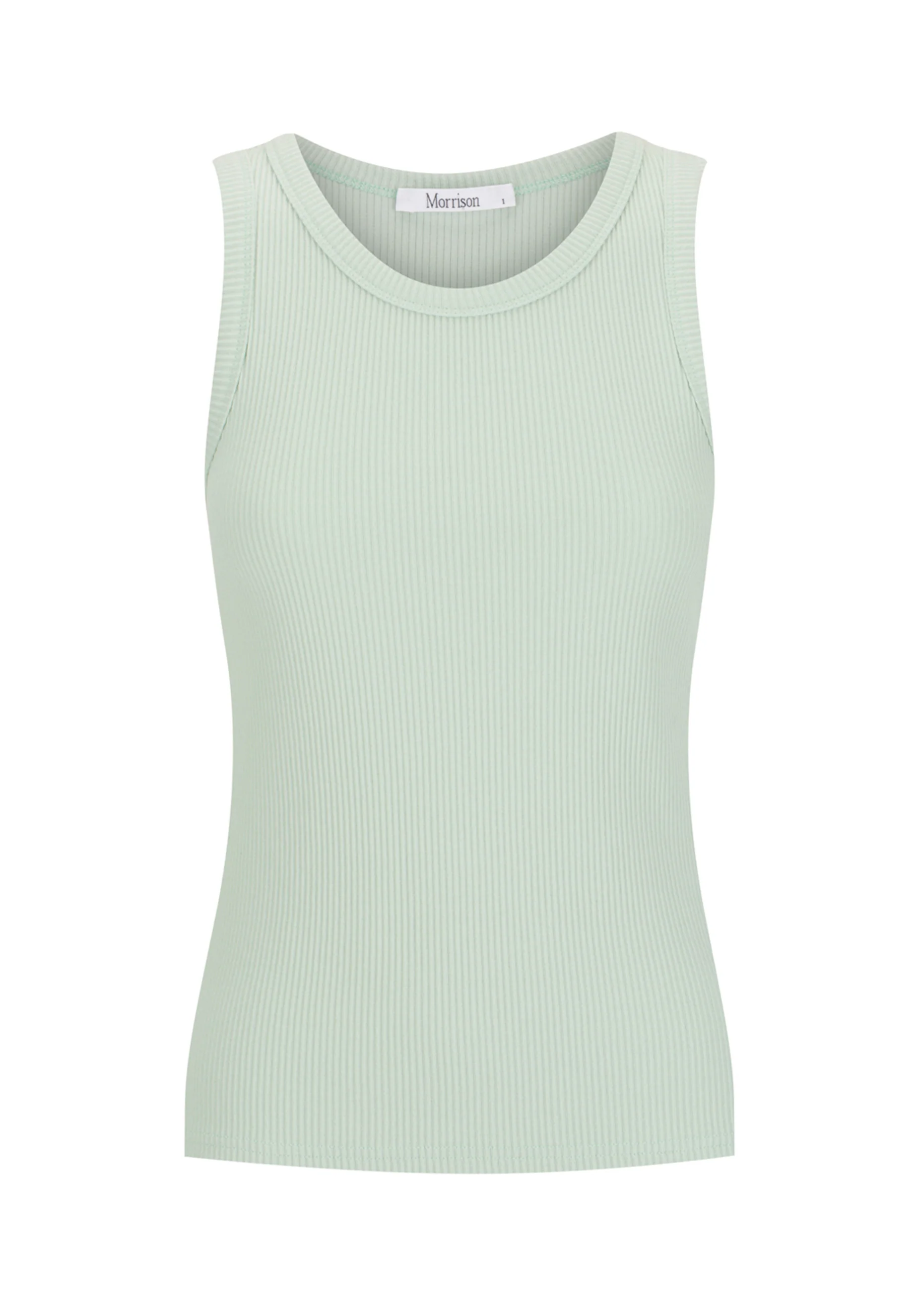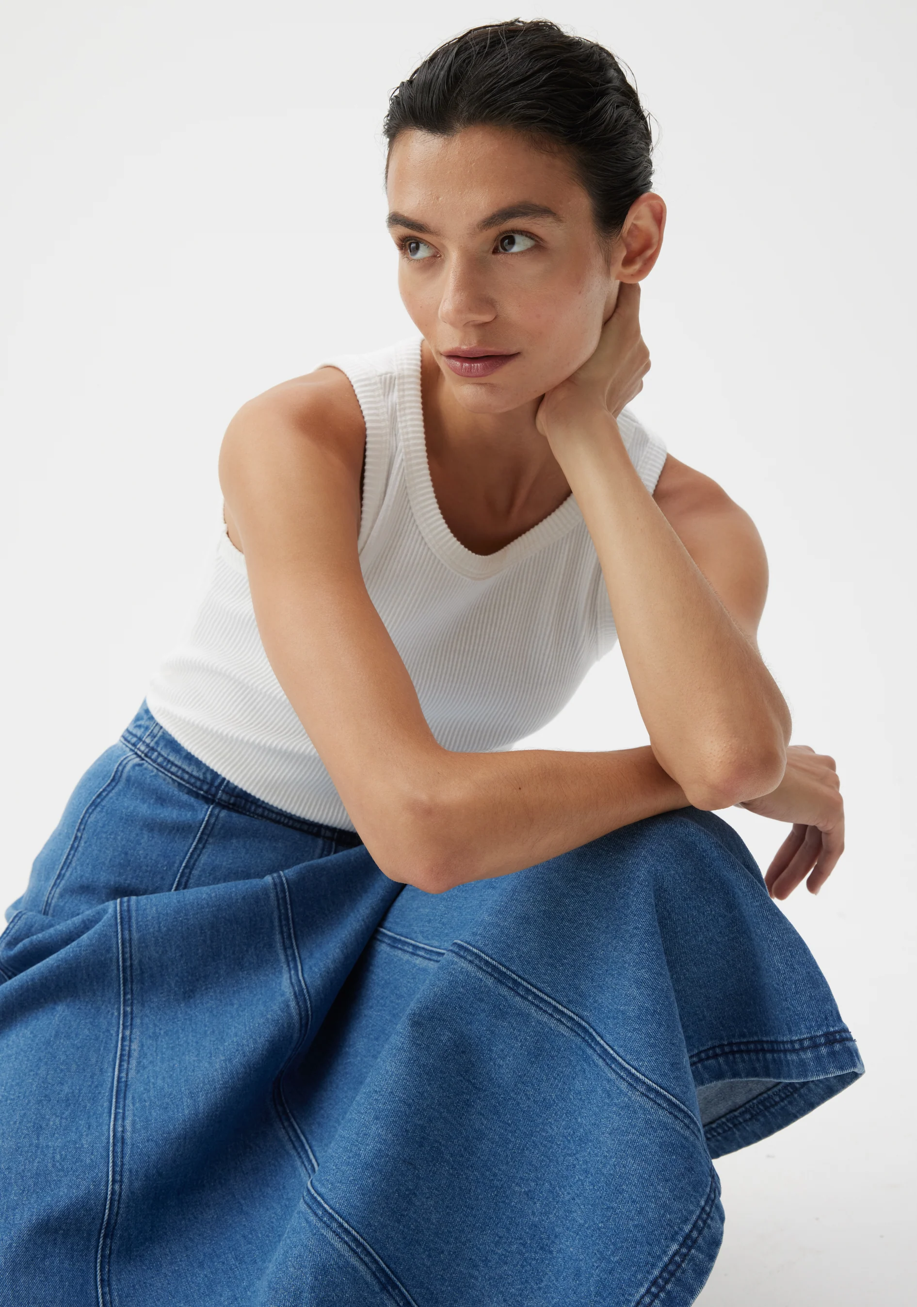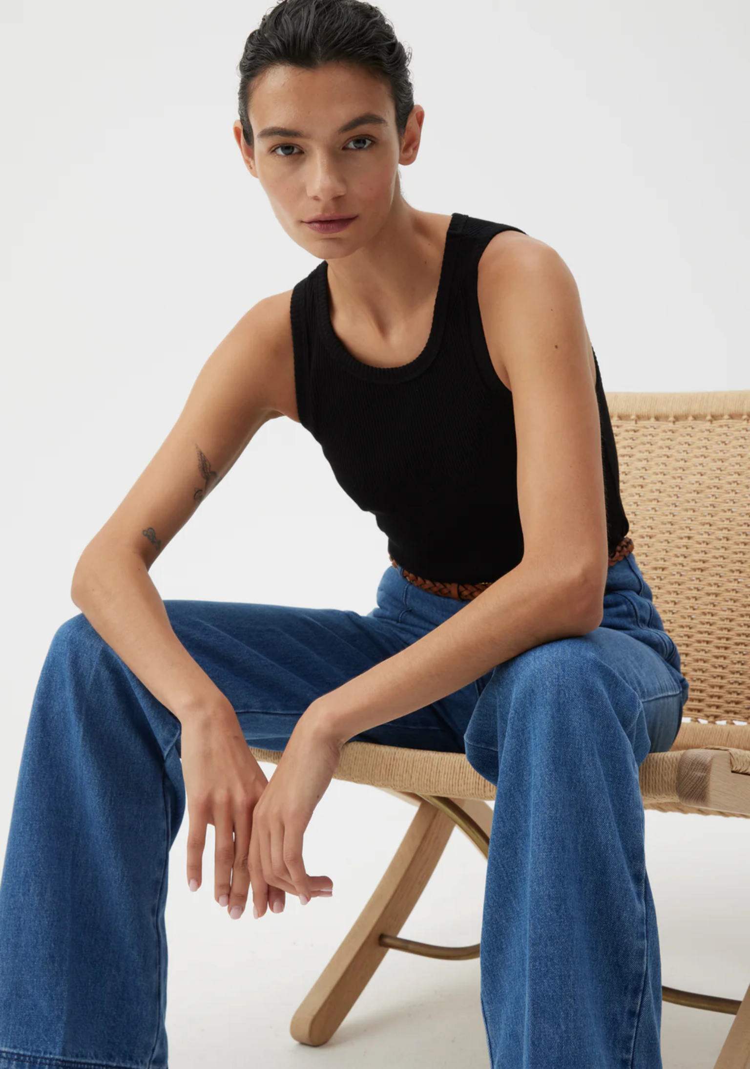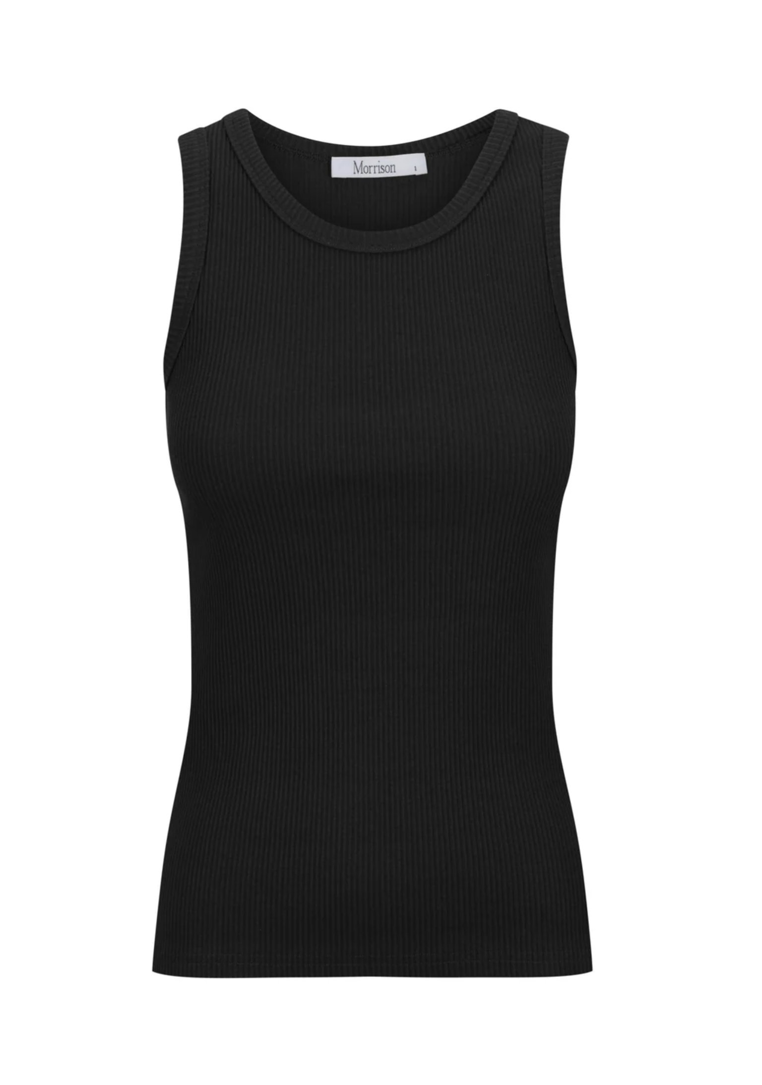 The Morrison Cassie Tank is a versatile essential, crafted from stretch cotton rib for a comfortable, flattering fit. Available in black, opal, and white, this tank features a classic crew neckline with neat binding at the neck and armholes for a clean finish.