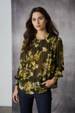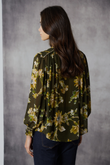 Add a playful elegance to your daytime look with the Lania Celeste long sleeve top cut in a lightweight georgette. Pleat detailing on the yoke with a satin trim on the seam adds a distinctly Lania moment to your outfit. This top features billowing sleeves with an elegant floral print, dramatic shirred cuffs with contrasting embroidery thread detaliing.