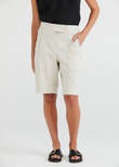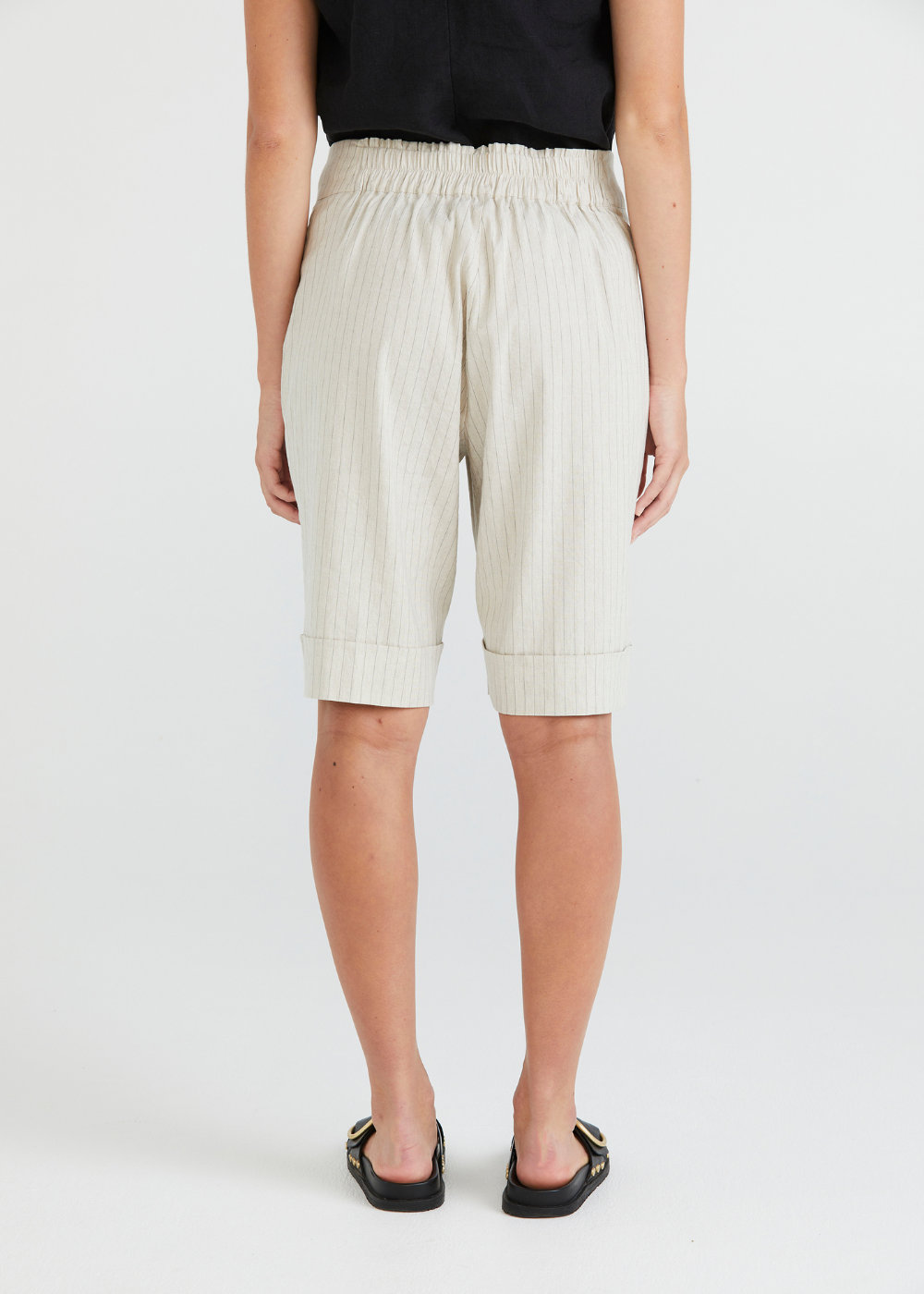 Embrace relaxed sophistication with the Chelsea Short in Natural from Lania The Label, a knee-length linen-blend piece featuring a classic pinstripe design. Deep front patch pockets and contrast stitching at the pocket openings and waist tab add a modern twist. Pair it with the Lania Chelsea Jacket for the perfect summer suit.
