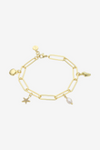 Add a coastal touch to your stack with the Coast Bracelet by Liberté. Featuring a classic chain-link design adorned with four ocean-inspired charms, this piece is available in gold or silver and finished with microplating for lasting shine. Nickel-free and adjustable for the perfect fit, it’s a playful yet polished addition to any look.