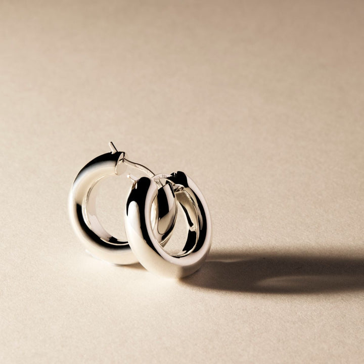 Indulge in the transformative allure of the NAJO Cocoon hoop earrings, as they envelop your ears in a cocoon of radiant light. Handcrafted with precision by skilled Thai silversmiths, these earrings boast a chunky yet lightweight form, crafted from polished hollow tubing to ensure a comfortable wear.