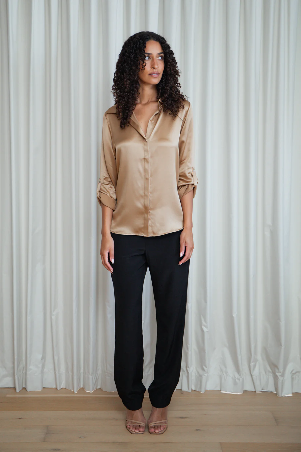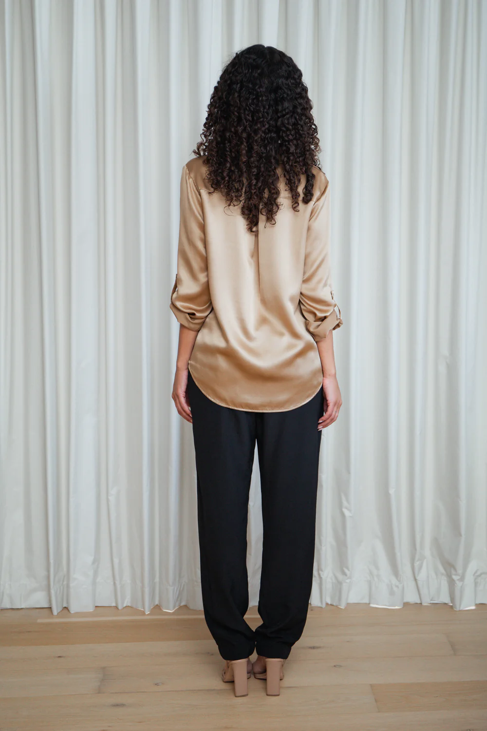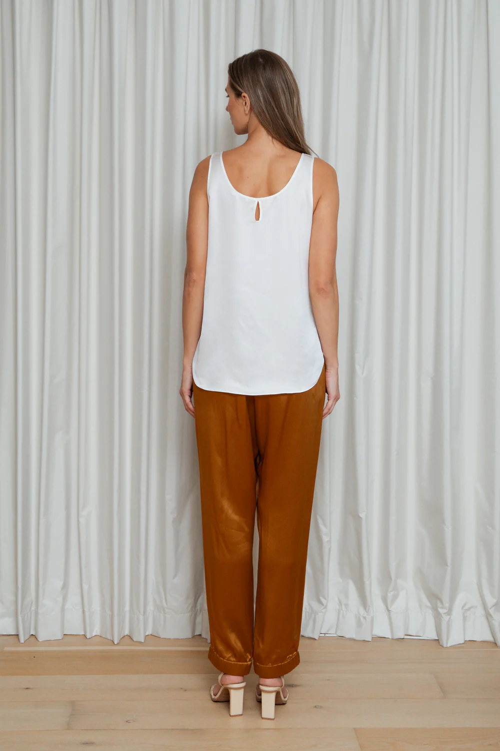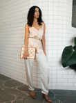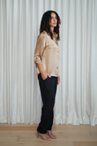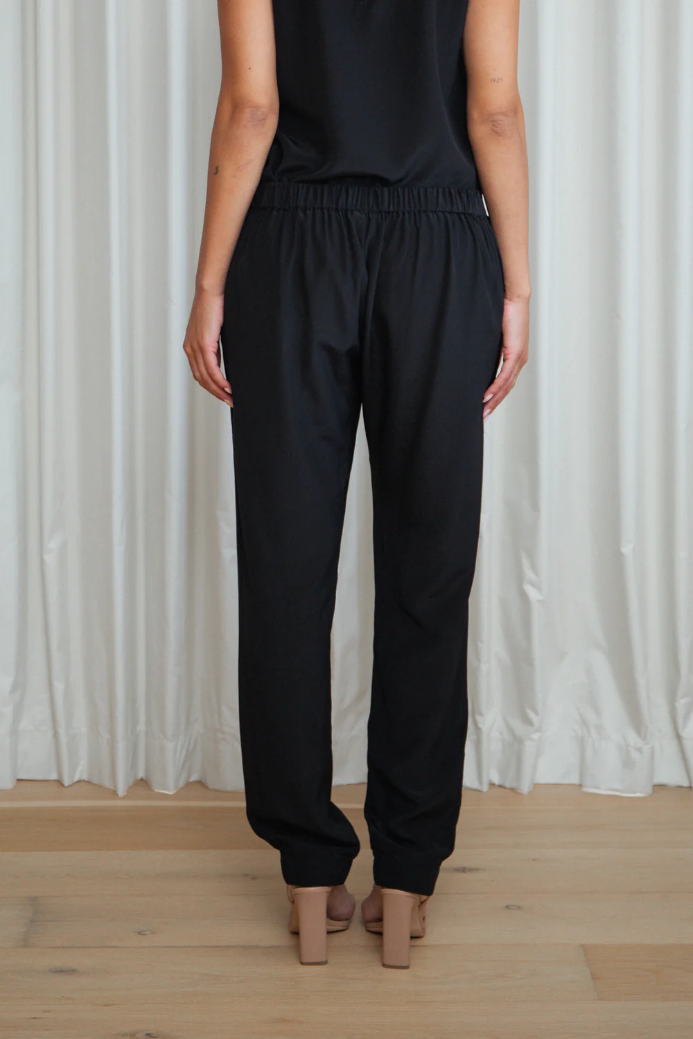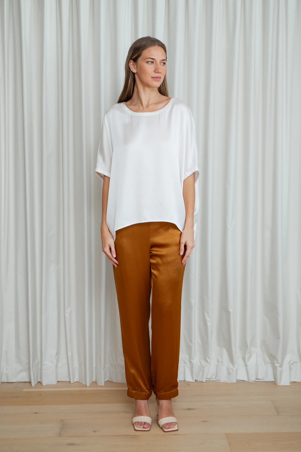 With a flattering flat front waistband and elasticated back, this piece is designed to be worn loose—perfect for everyday sophistication or elevated styling.