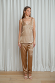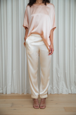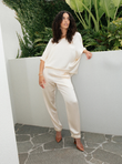 When you need a touch of luxury and ease, the Silk Degrees Comfort Pant is your go-to for effortless elegance. Crafted from 100% Mulberry Silk with a soft satin finish, it offers a relaxed silhouette that sits gracefully on the hips while delivering all-day comfort and timeless appeal.