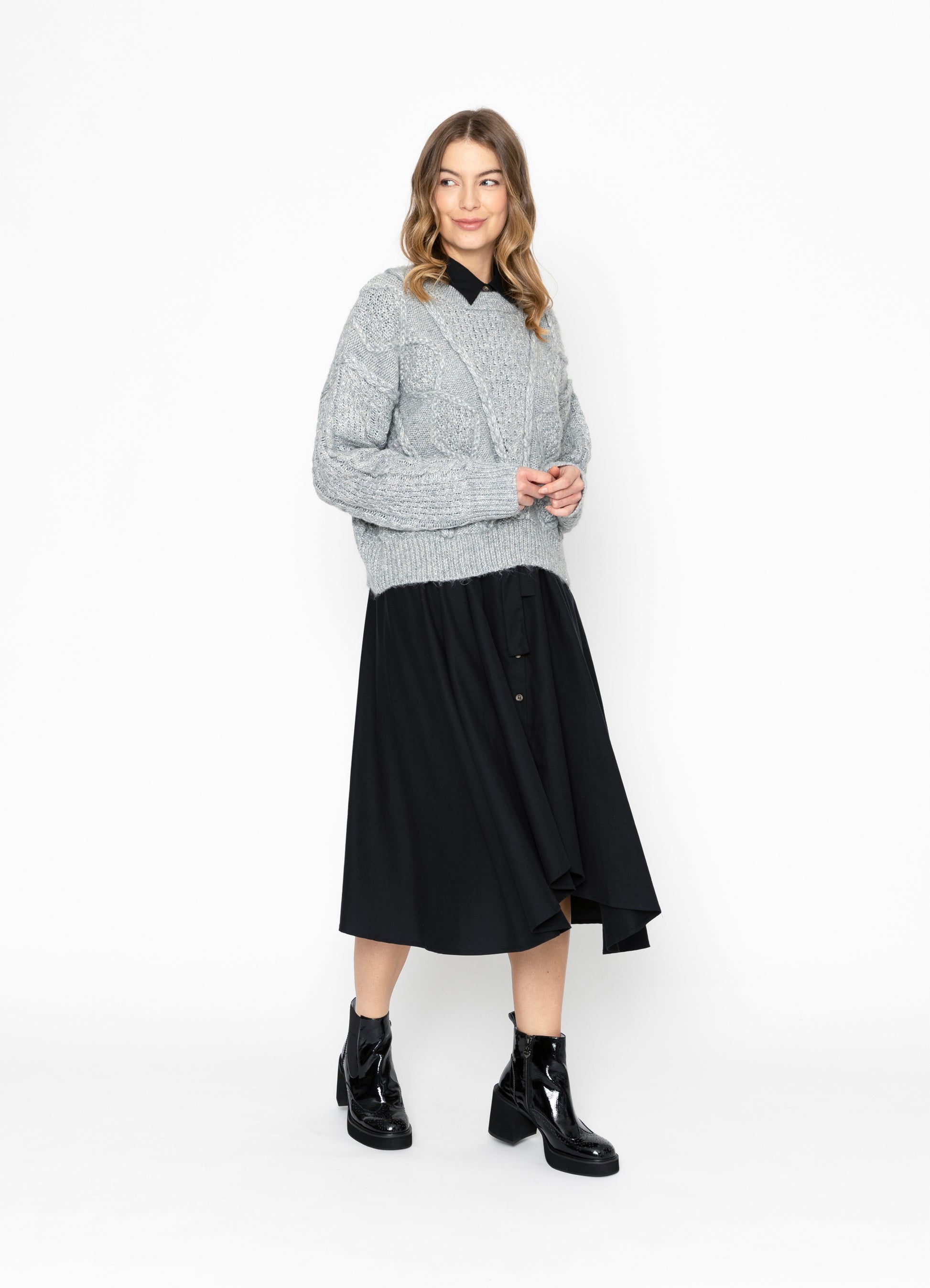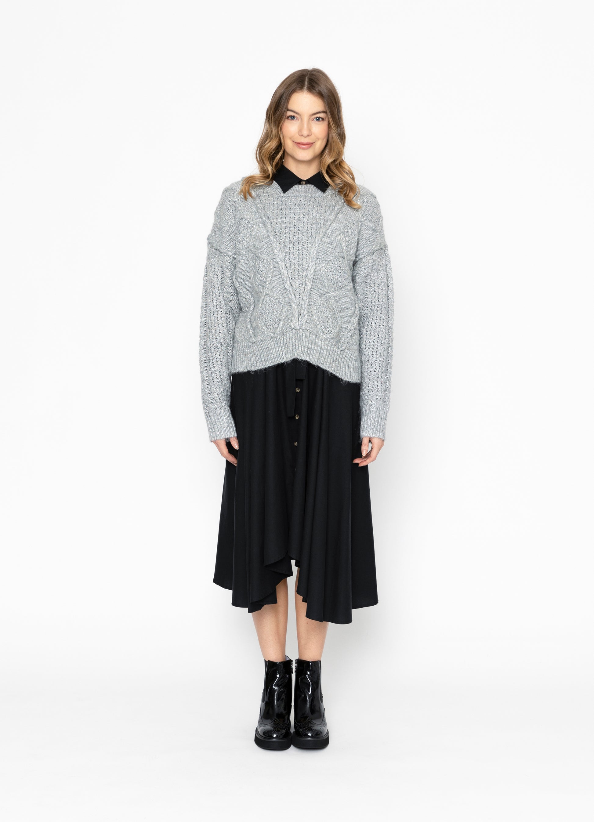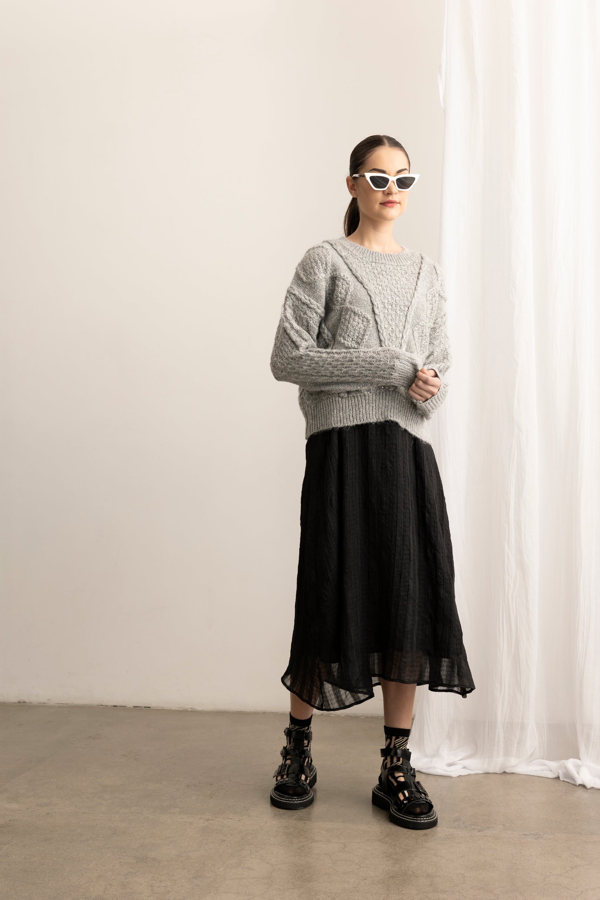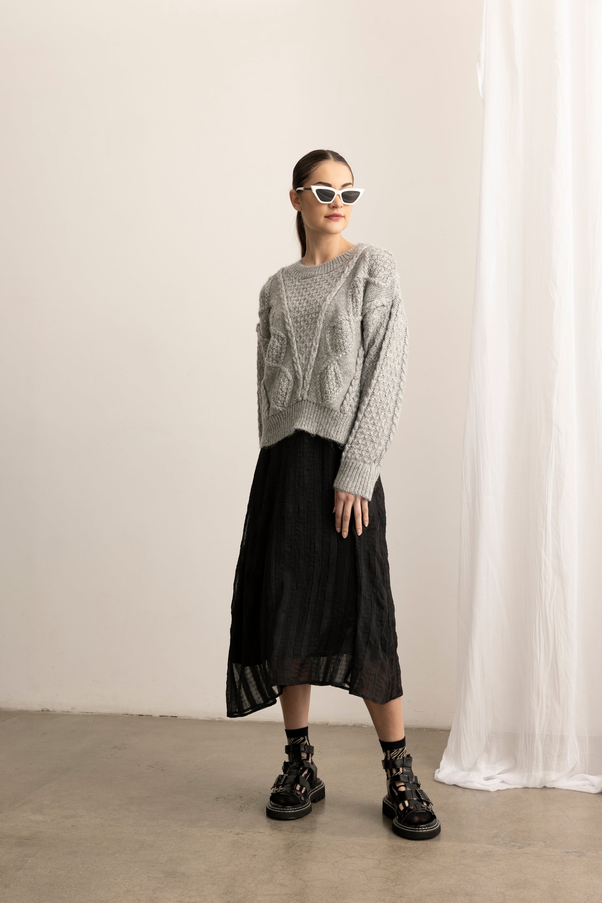 The Two By Two Cosmo Top in Silver is a modern take on effortless style. Featuring a textured cable knit pattern and a relaxed, boxy silhouette, this top blends comfort with contemporary design. Its soft, stretch-infused fabric offers ease of movement, making it the perfect go-to for casual yet polished looks. Pair with denim or tailored pants for versatile styling.