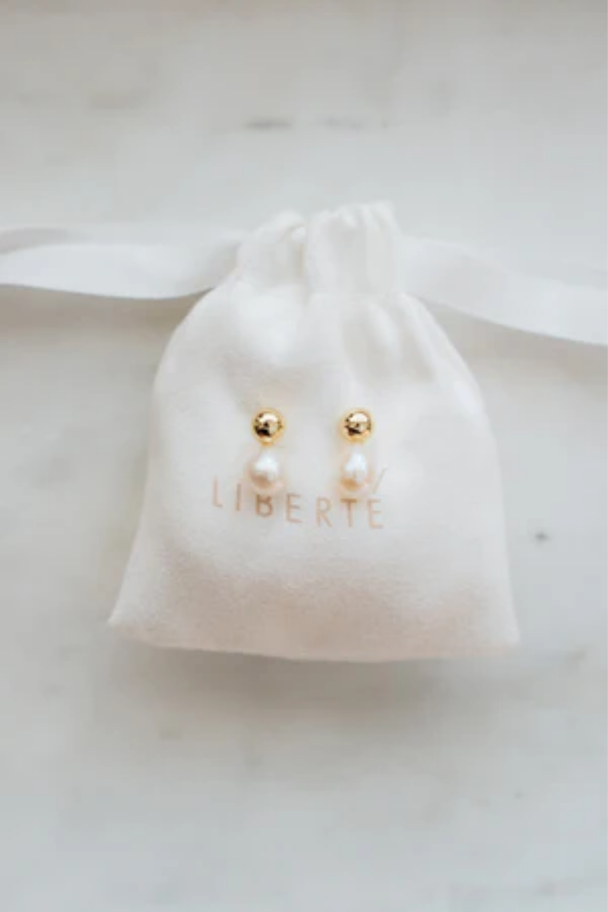 The Cove Gold Pearl Earrings by Liberte feature a freshwater pearl paired with a gold sphere stud, creating a timeless and elegant look. With a 1.5 cm drop, these earrings offer a softly structured design that adds a touch of sophistication to any outfit. Crafted with stainless steel posts and microplated, nickel-free materials, they’re perfect for sensitive ears. A versatile piece, these earrings can be dressed up or down for any occasion.