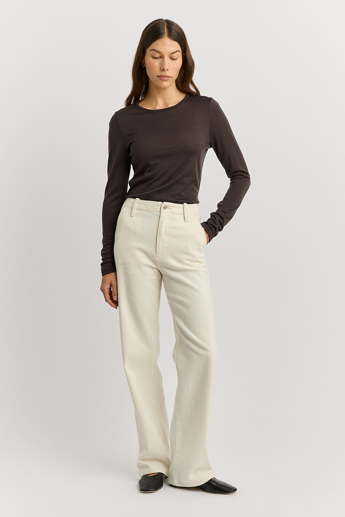 The Toorallie Crew Merino Tee is a slim-fitting essential with a classic round neckline and long sleeves, perfect for layering or wearing solo. Crafted from 100% ultra-fine Australian Merino Wool, it offers lightweight comfort and breathability—an elevated staple made for year-round wear.