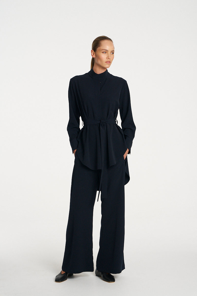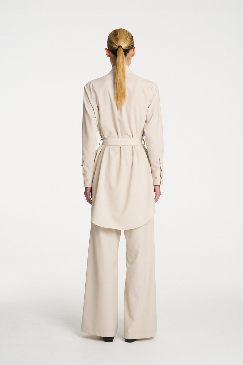 Crafted from Mela Purdie's Flex Weave, a minimalist twill weave with a smooth matte finish. The Cylinder Tunic features a long line silhouette and waist tie offering a versatile yet sophisticated look.