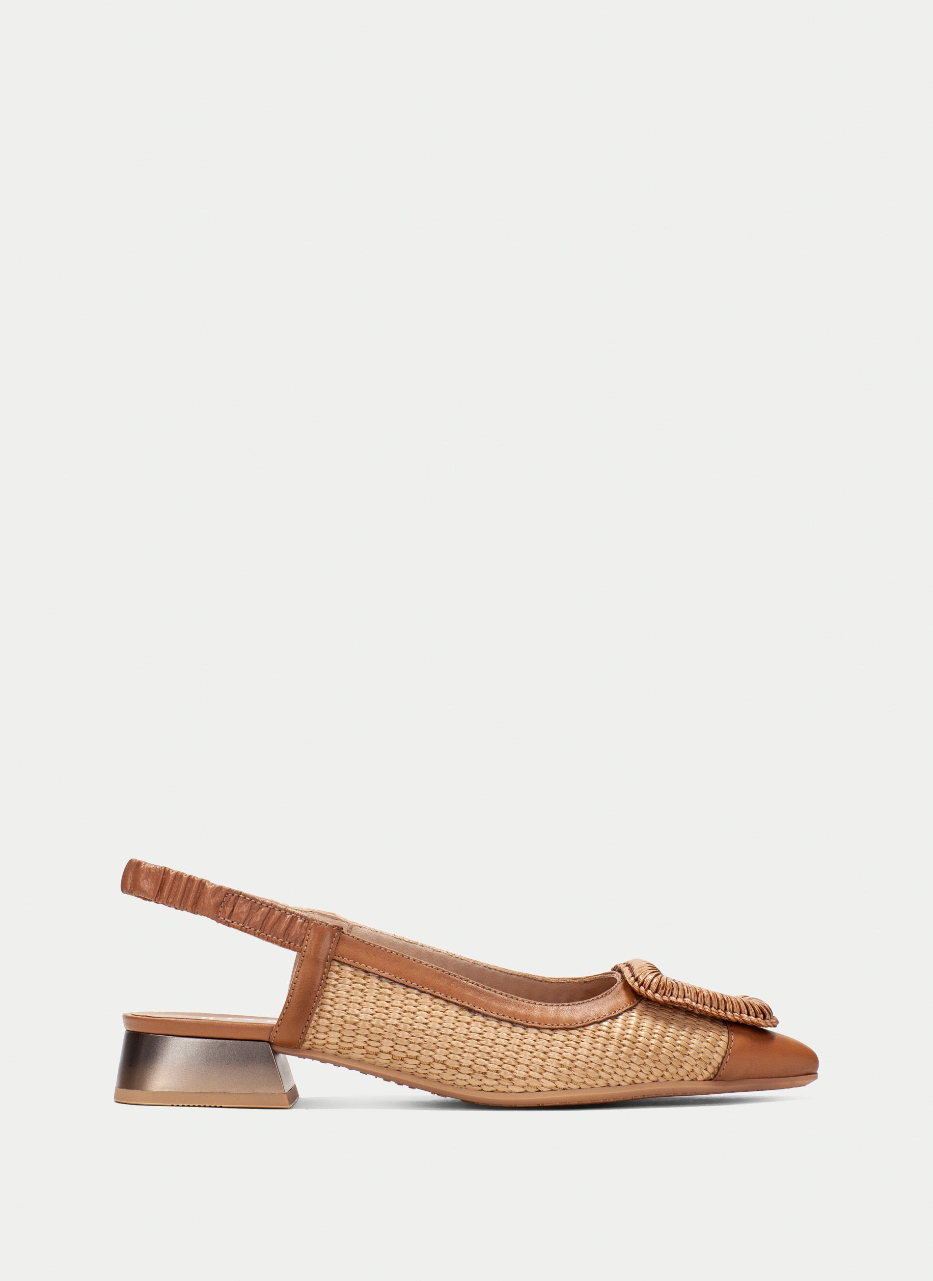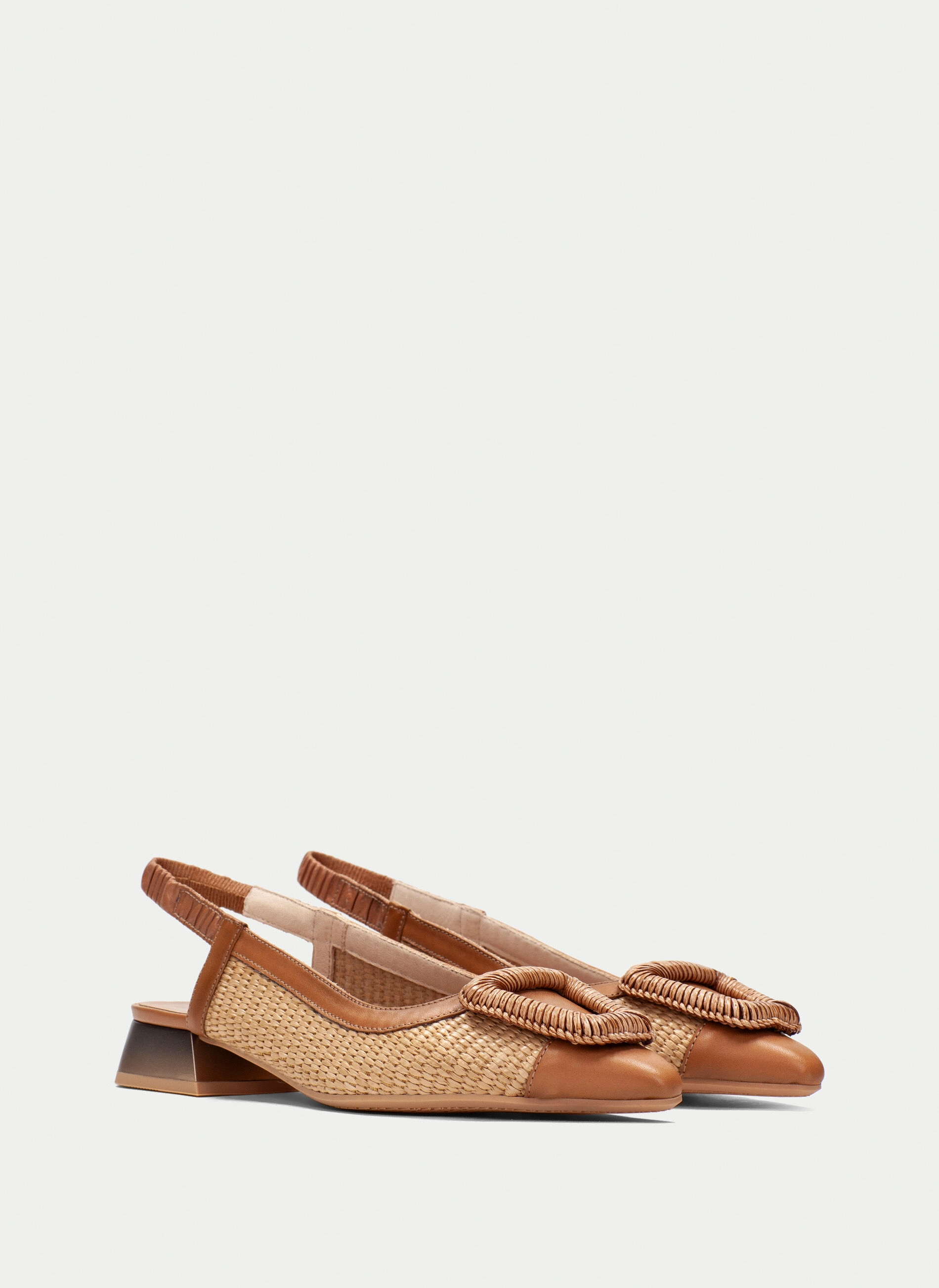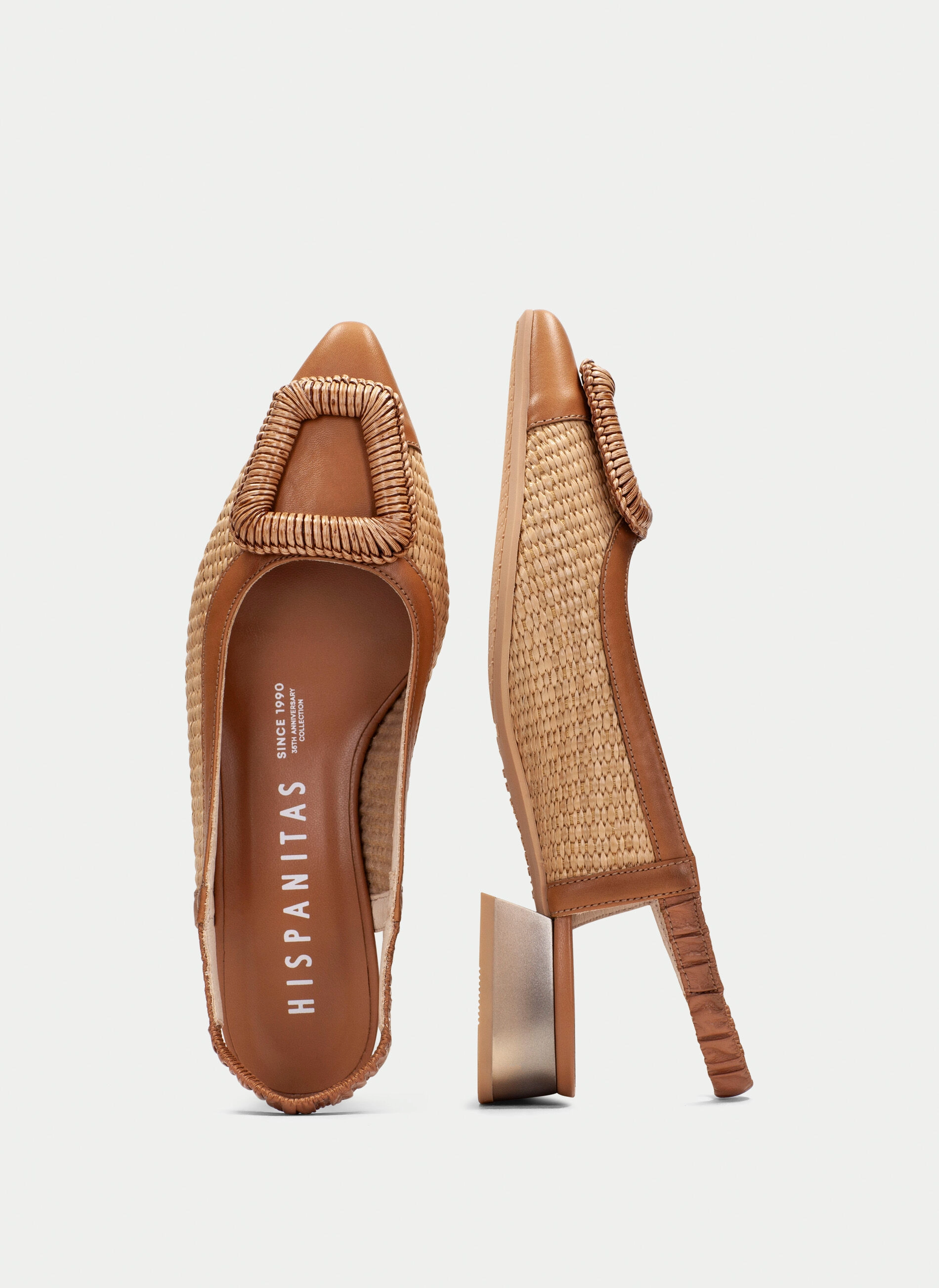 The Dali Slingback in Tan Raffia by Hispanitas blends artisanal charm with everyday comfort. Featuring a sleek pointed toe and a low 2.5 cm heel, it offers effortless wear for any occasion.