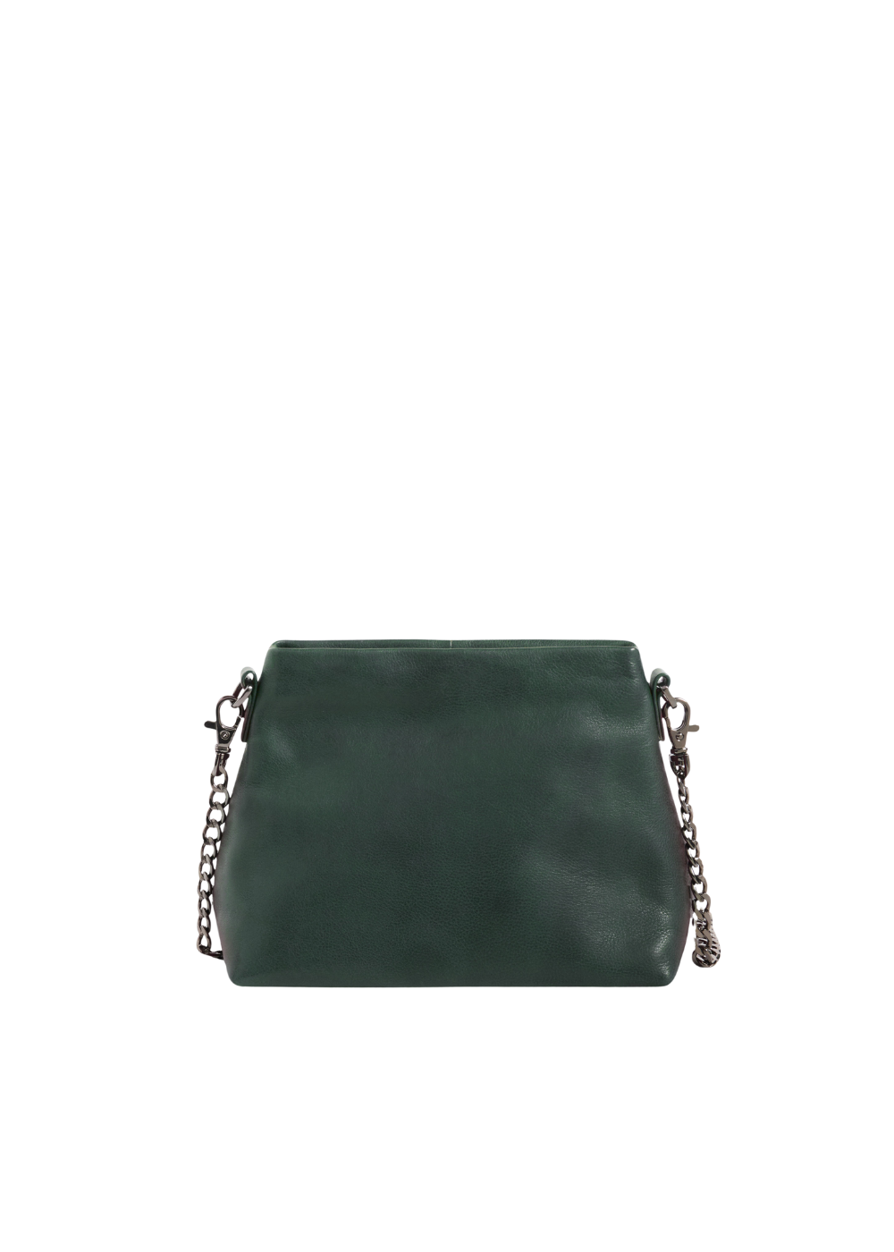 Crafted from soft remnant cow leather in rich Forest Green or Mulberry, each bag is finished with complementary hardware for a modern, polished look with a hint of edge.