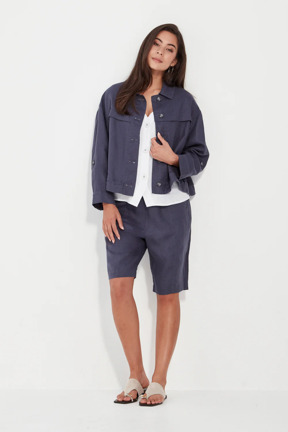 The Verge Echo Jacket is a relaxed utility-inspired style crafted from 100% linen for breathable comfort and effortless wear. Featuring a button-through front, classic collar, and full-length sleeves with adjustable button tabs, it offers versatility and ease. An internal drawcord allows you to define the waist for a more tailored silhouette. Lightweight and timeless, it’s the perfect layering piece—whether styled with linen pants or worn open over your favourite summer dress.
