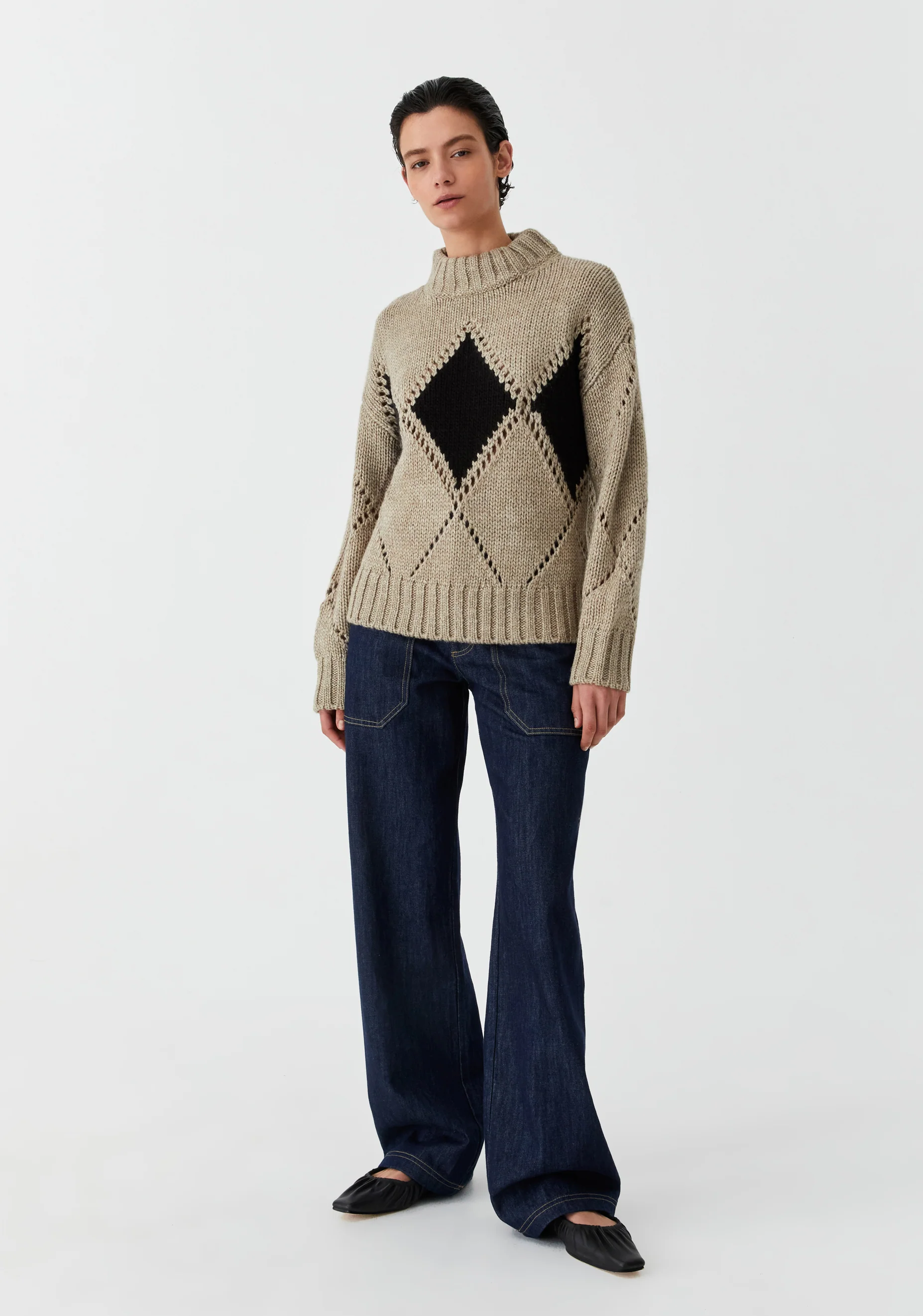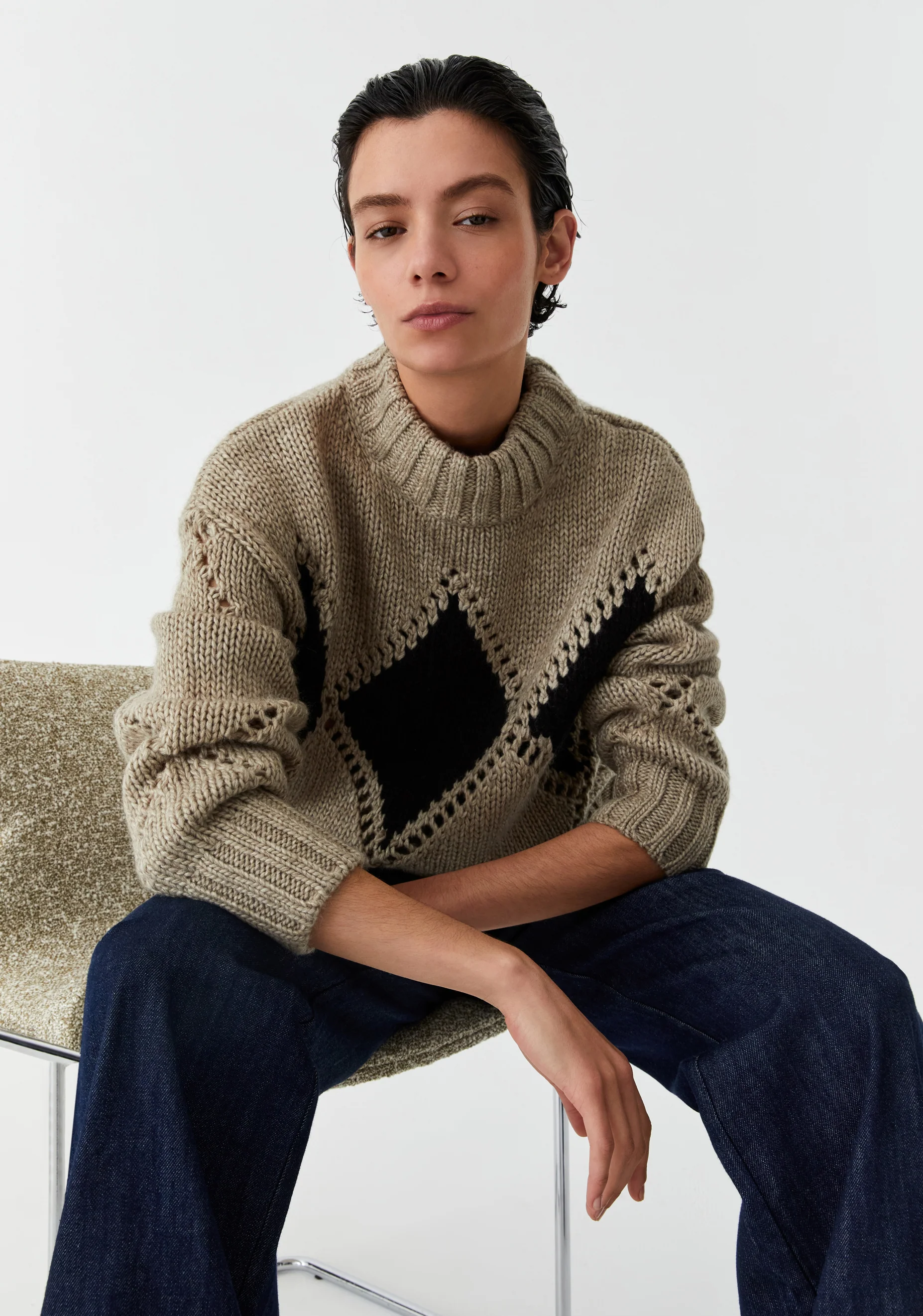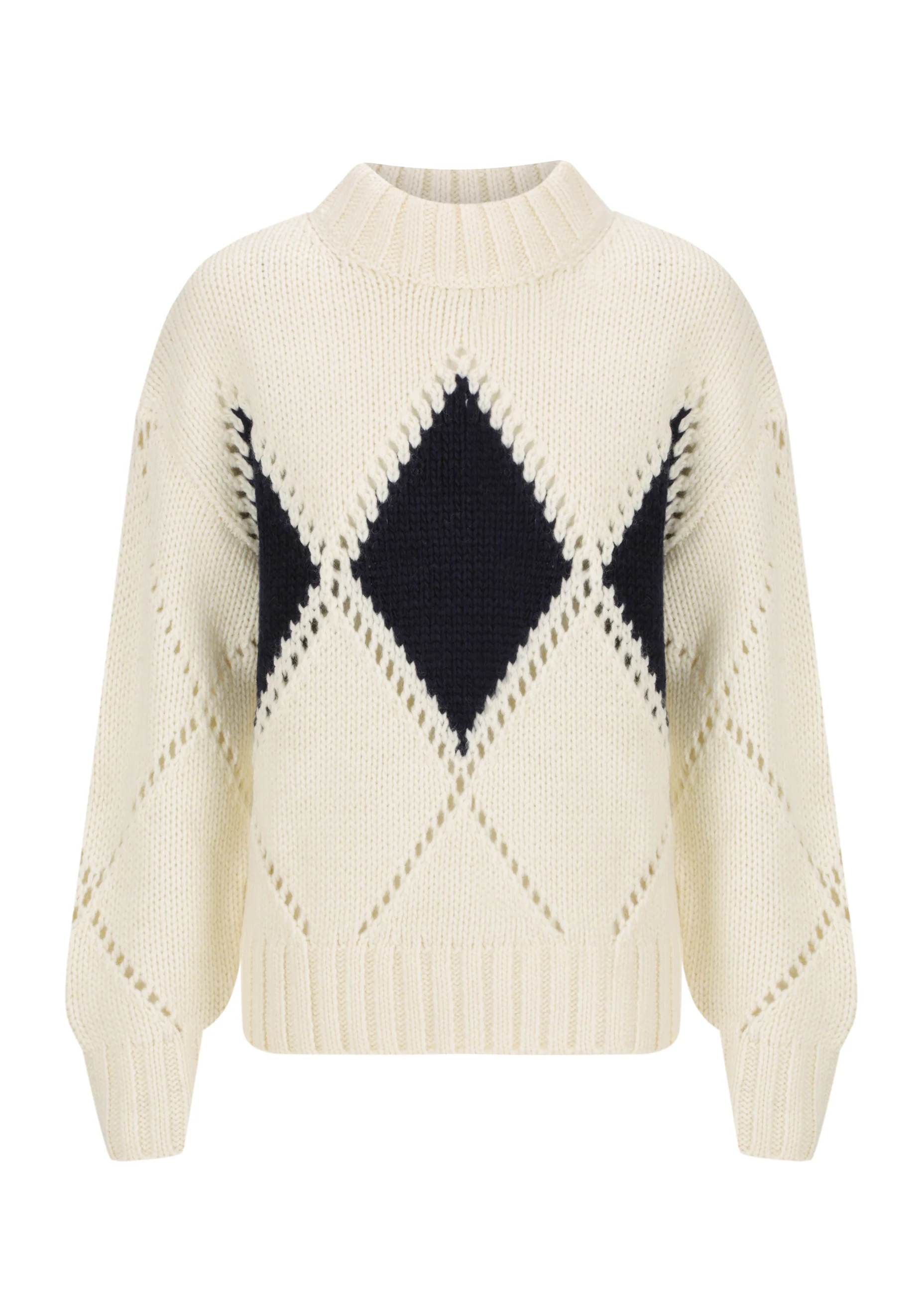 The Morrison Eden Knit Pullover is a cosy essential, spun from a chunky wool blend with recycled fibres for added warmth and sustainability. Featuring delicate diamond pointelle detailing, it’s designed with a high neckline, dropped shoulders, and full-length sleeves with snug cuffs. The relaxed silhouette offers effortless comfort with a softly structured finish — perfect for layering on cooler days.