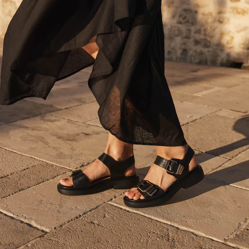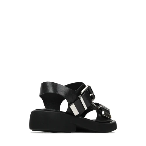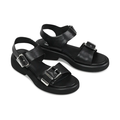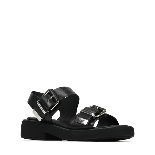 Step into modern sophistication with the EOS ELE Flatform Sandals. These sandals effortlessly combine sleek design with everyday functionality. Featuring bold buckle accents and dual adjustable straps for a secure and tailored fit, the ELE Flatform Sandals are perfect for adding an edgy yet versatile touch to any outfit.