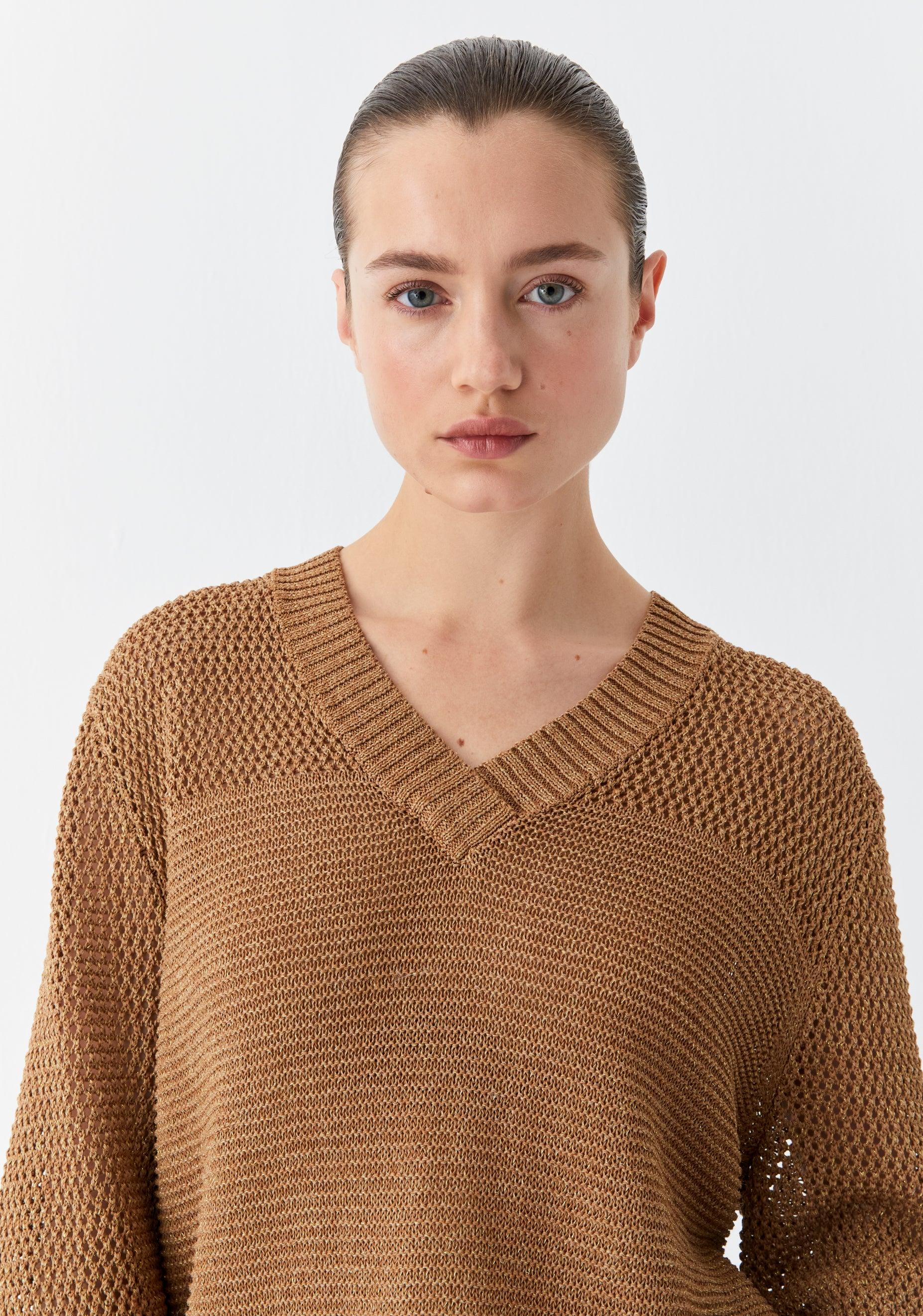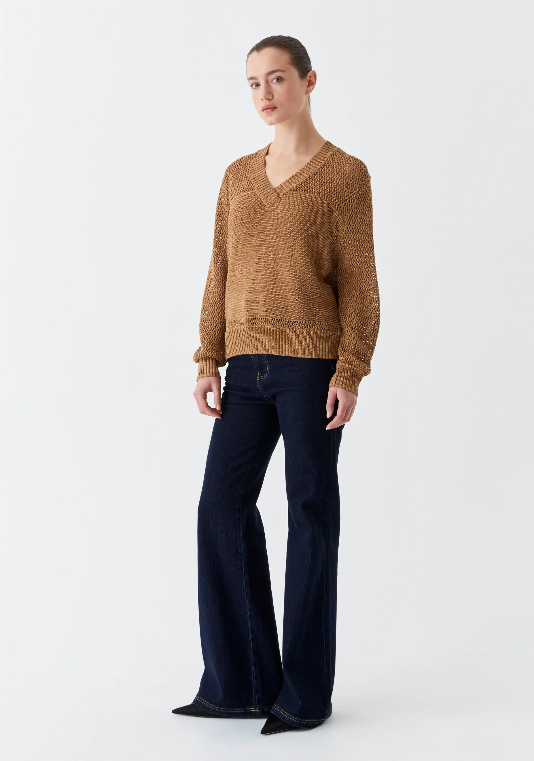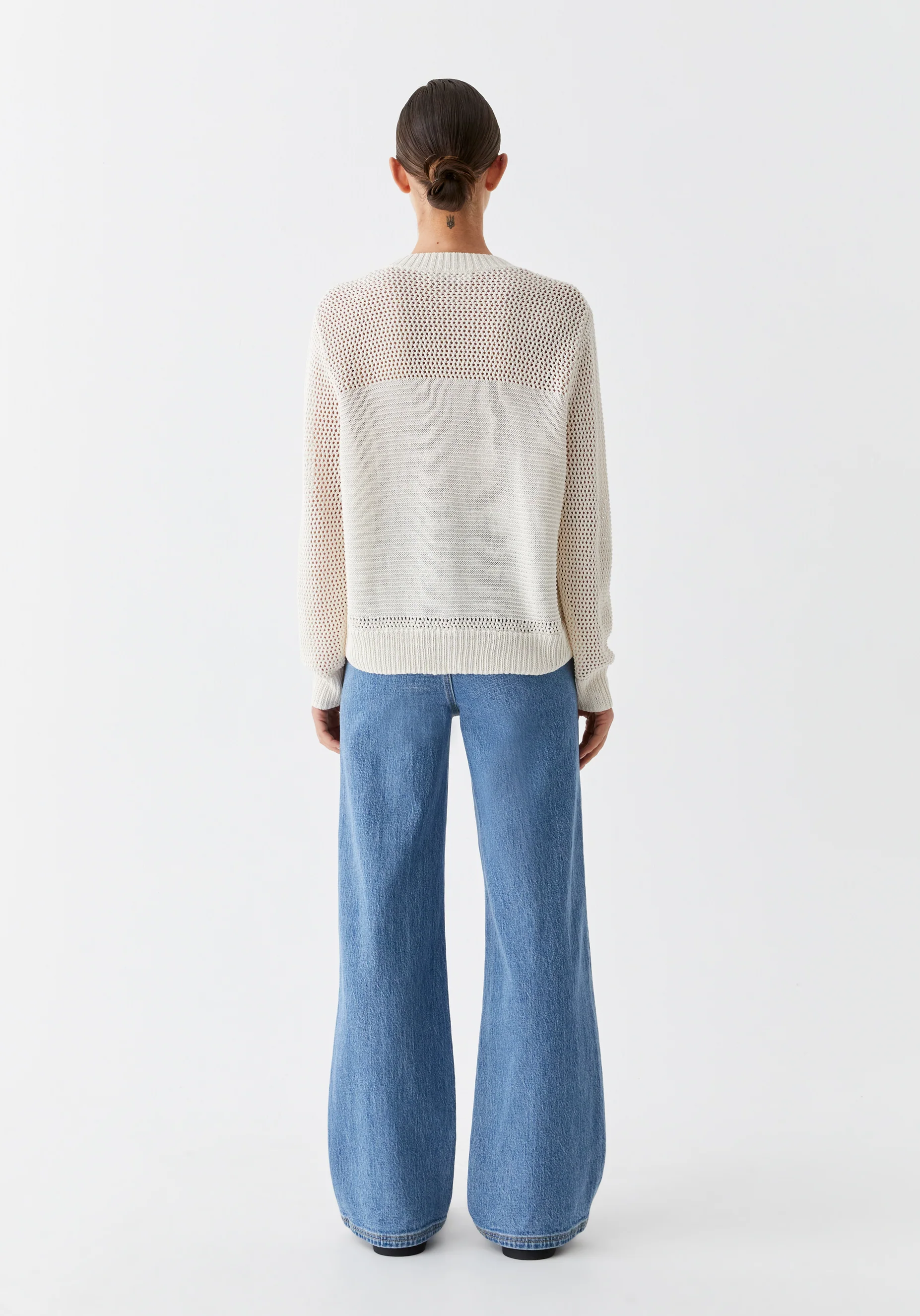 The Morrison Emme Knit Pullover is a timeless staple, crafted from a soft cotton blend yarn for effortless comfort. Featuring a flattering V-neckline and full-length sleeves, this pullover offers a regular fit through the body. Delicate mesh stitch detailing through the yoke and sleeves adds subtle texture, while jersey stitch panels at the bust provide a refined finish.