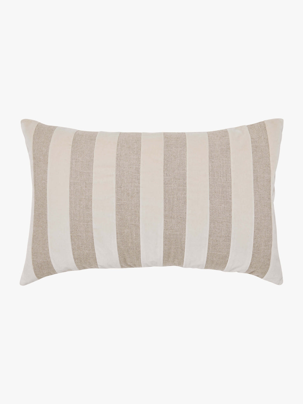 Crafted from exceptionally soft cotton velvet adorned with alternating natural linen stripes, the elegant Etro Stripe Cushion in Almond from L&M Home introduces both warmth and texture to any setting.