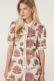 The Evita Maxi Dress by Cable Melbourne is a perfect blend of elegance and comfort, crafted from a sheer, breathable silk-cotton voile in an exclusive print. Designed for a regular fit, this dress features a button-through front, short sleeves with adjustable button cuffs, and a matching fabric belt for added style. Convenient side pockets and a lined slip complete the sophisticated design.