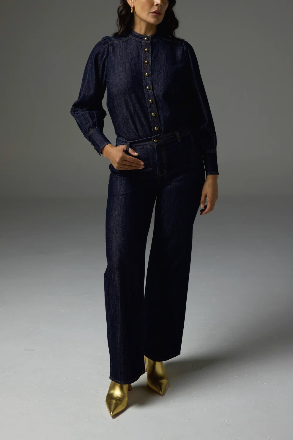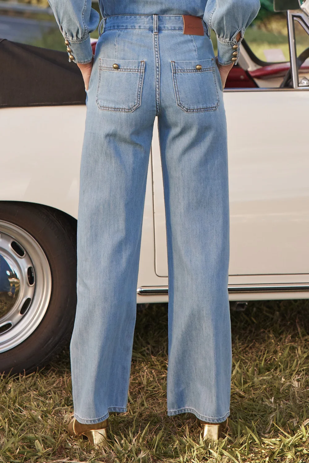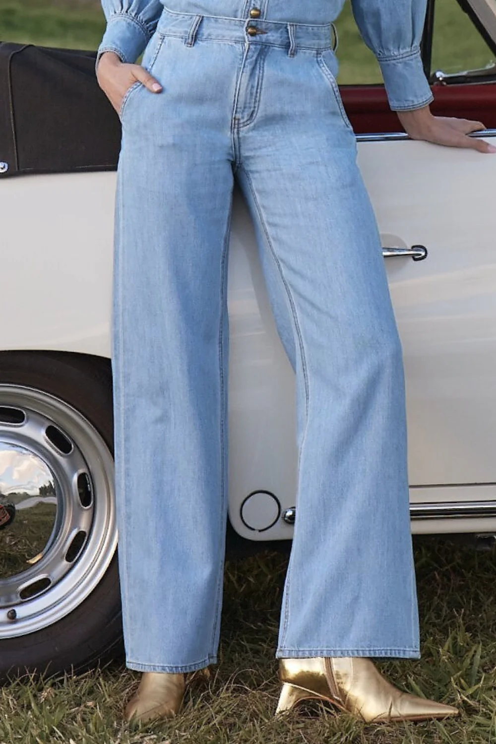 The Zoe Kratzmann Flint Jean strikes the perfect balance between contemporary edge and effortless elegance. Designed with a flattering high waist and wide-leg silhouette, it offers soft, structured proportions for a refined yet relaxed feel. Crafted from a cotton-lyocell blend, it wears like a pant but channels the timeless appeal of denim. Finished with brass button details for a vintage-inspired touch, it’s the perfect piece to pair with matching denim or a crisp blouse for a modern take on classic style.