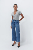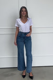 A nod to 70s chic with a modern edge, the Kireina Freya Jean in Waterfall Wash is your new denim go-to. Featuring a flattering mid-to-high rise, this style hugs the hips before falling into a relaxed wide leg that flares gently from the knee.