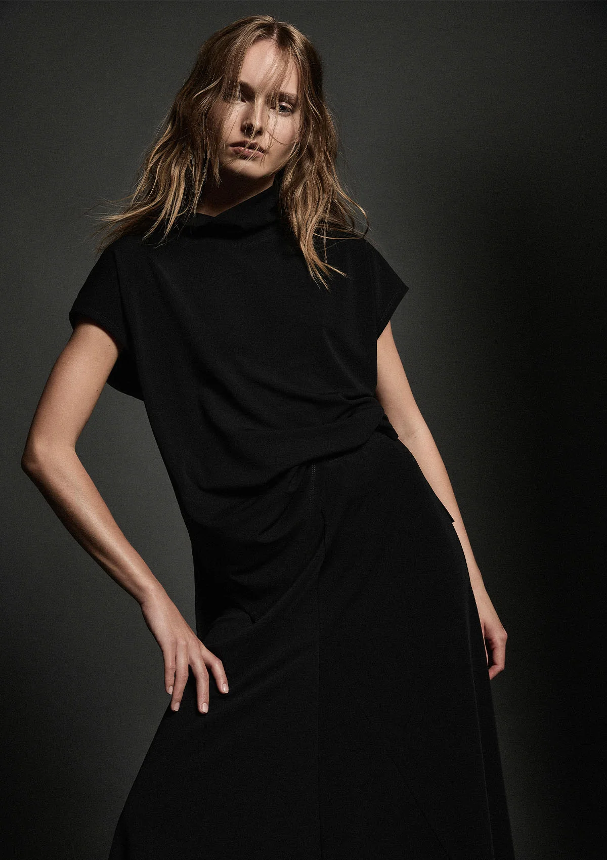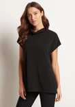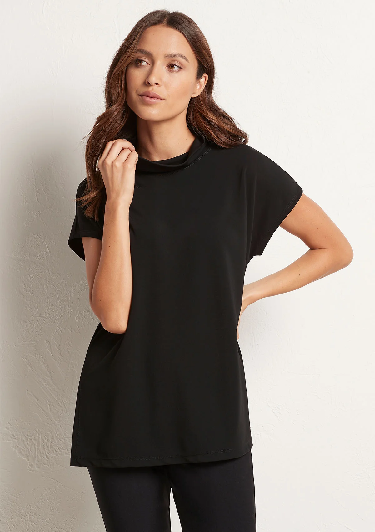 Crafted from soft, matte Powder Knit, this lightweight top features a folded funnel neckline, short extended sleeves, and a gently relaxed silhouette for a flattering, wearable fit. Whether worn on its own or layered under jackets and knits, it’s a versatile wardrobe staple that brings modern polish to any look.