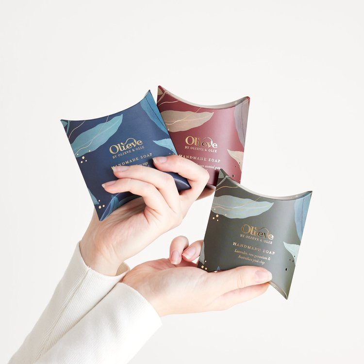 Each beautifully packaged soap features a handmade bar from the Olieve & Olie range, crafted with love and care. Choose from the refreshing Lemon Myrtle, Lemon Scented Gum & Poppy Seed, or the soothing Bergamot, Clary Sage & Activated Charcoal scent.