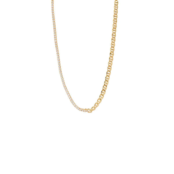 The Half Tennis Necklace by Bianc features a half traditional Tennis Necklace design with a half chain for a classic yet trendy looks.