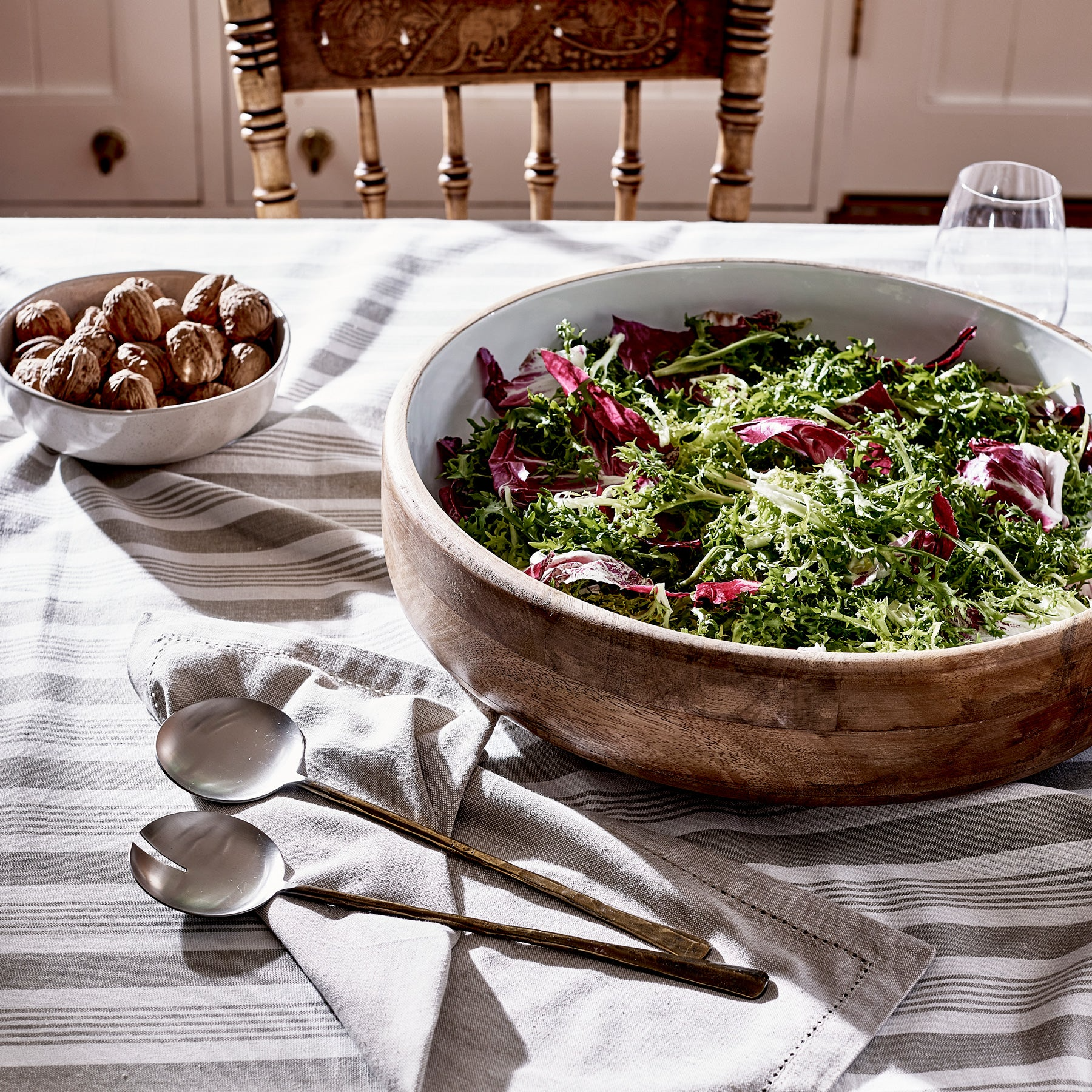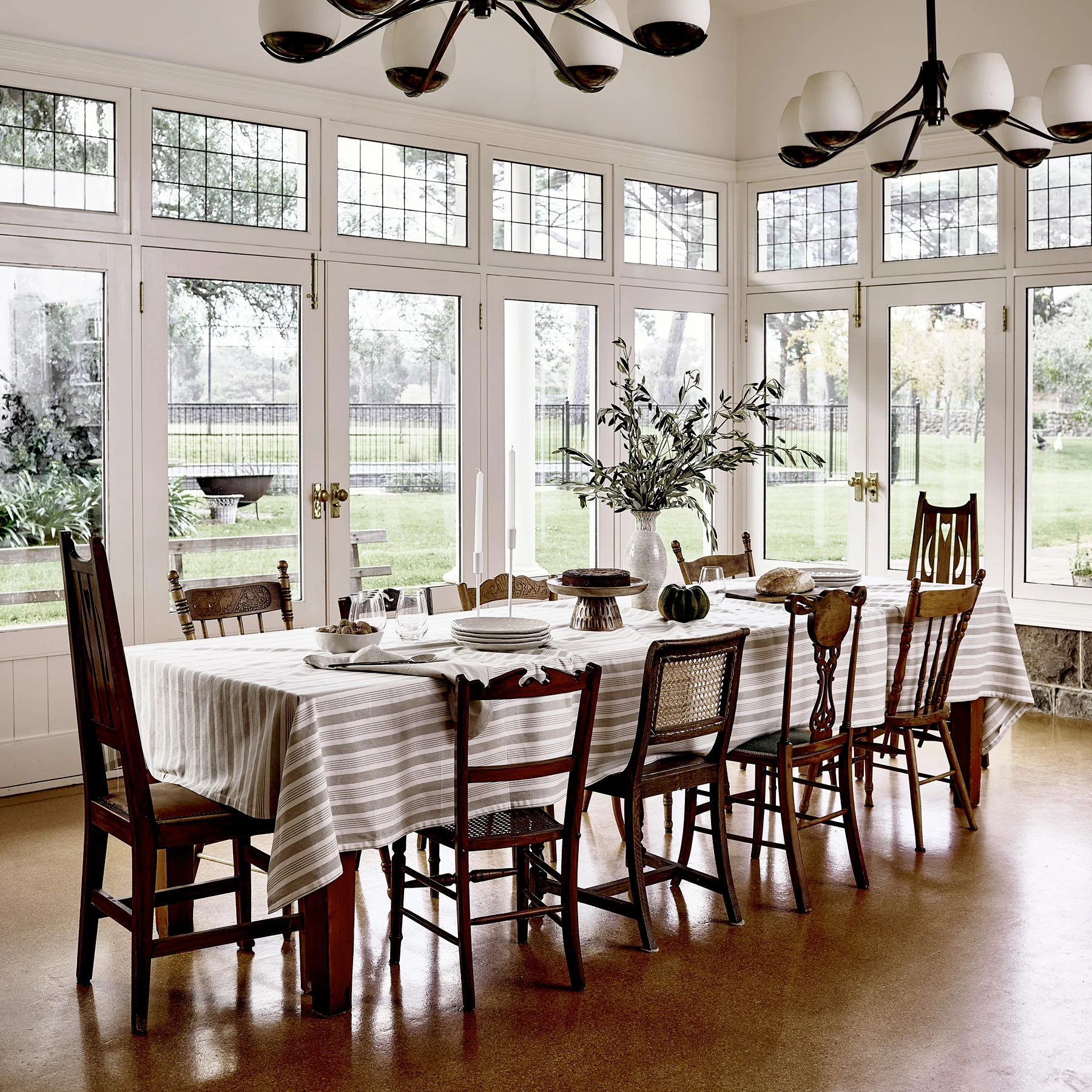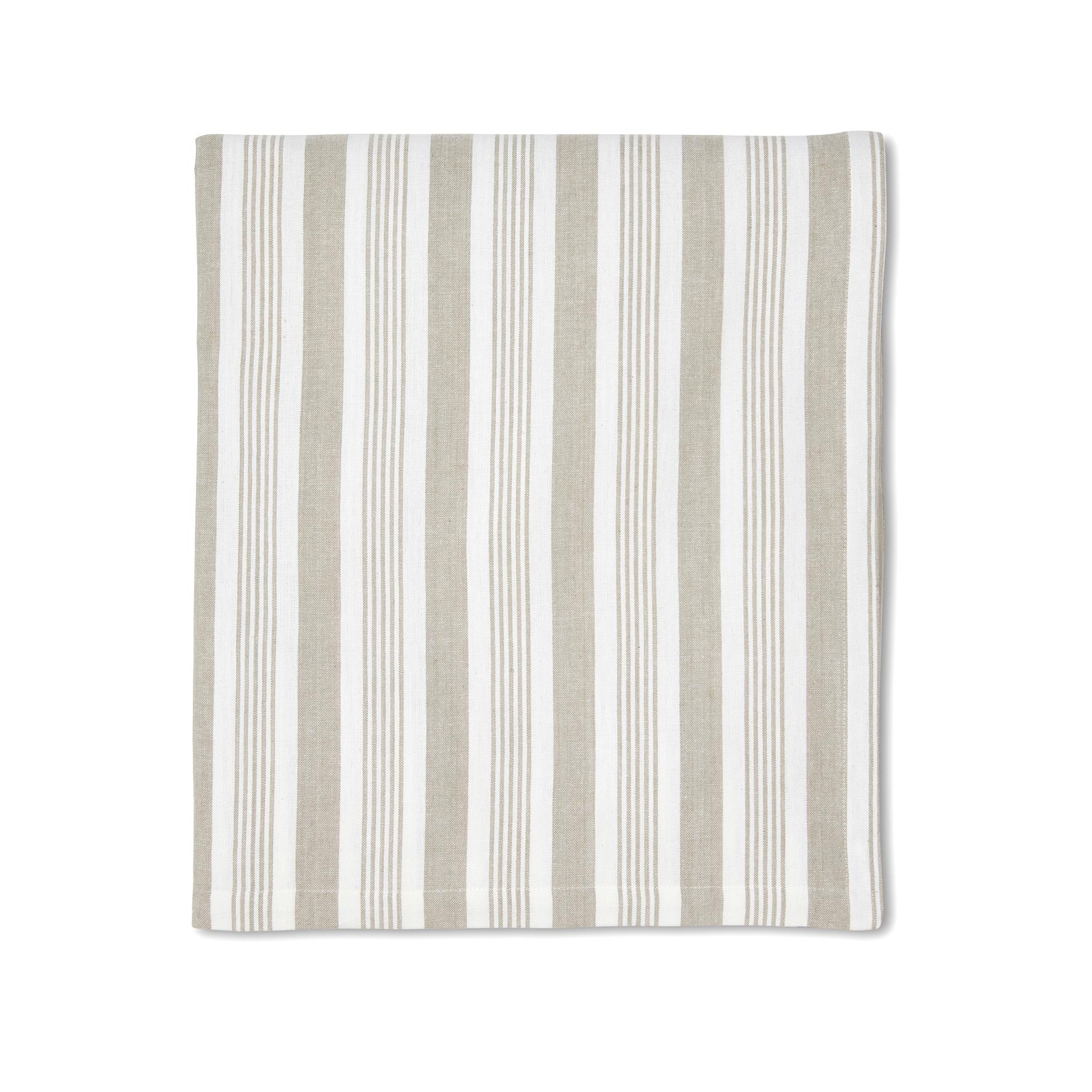 The Madras Harbour Oatmeal Stripe Tablecloth will be a delightful addition to your table linen collection. Featuring an elegant alternating oatmeal stripe against an off-white background, this tablecloth adds a touch of intrigue to your dining experience.